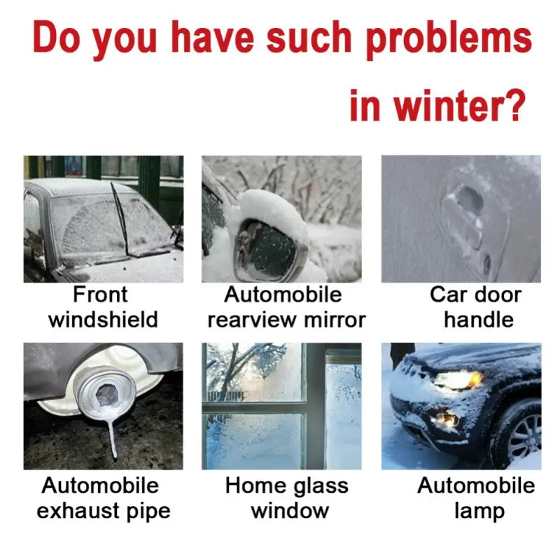 5. Как использовать: 1. Сначала используйте лопату для снега для лопаты снега на стекле. 2. Равномерно распылите нож на матовое стекло. 3. Подождите несколько минут и Растопите снег полотенцем.