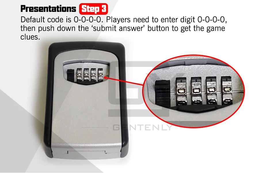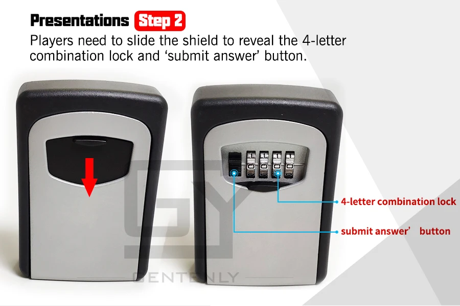 Закодированная коробка может скрывать ключи вашей комнаты побега, такие как бумага, ключи или карты. Игрокам необходимо найти комбинацию букв и ввести правильный код, а затем отправить свой ответ, чтобы освободить кодовую коробку.