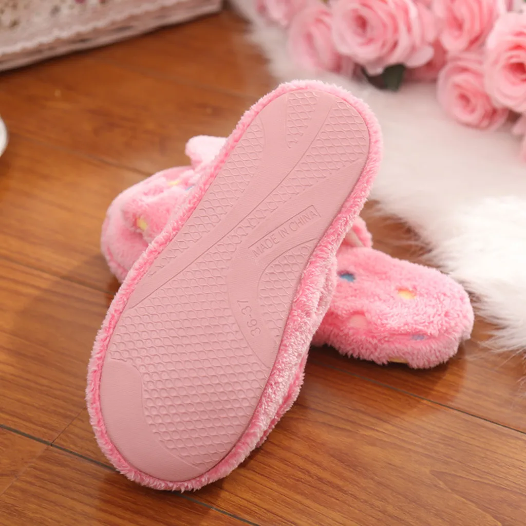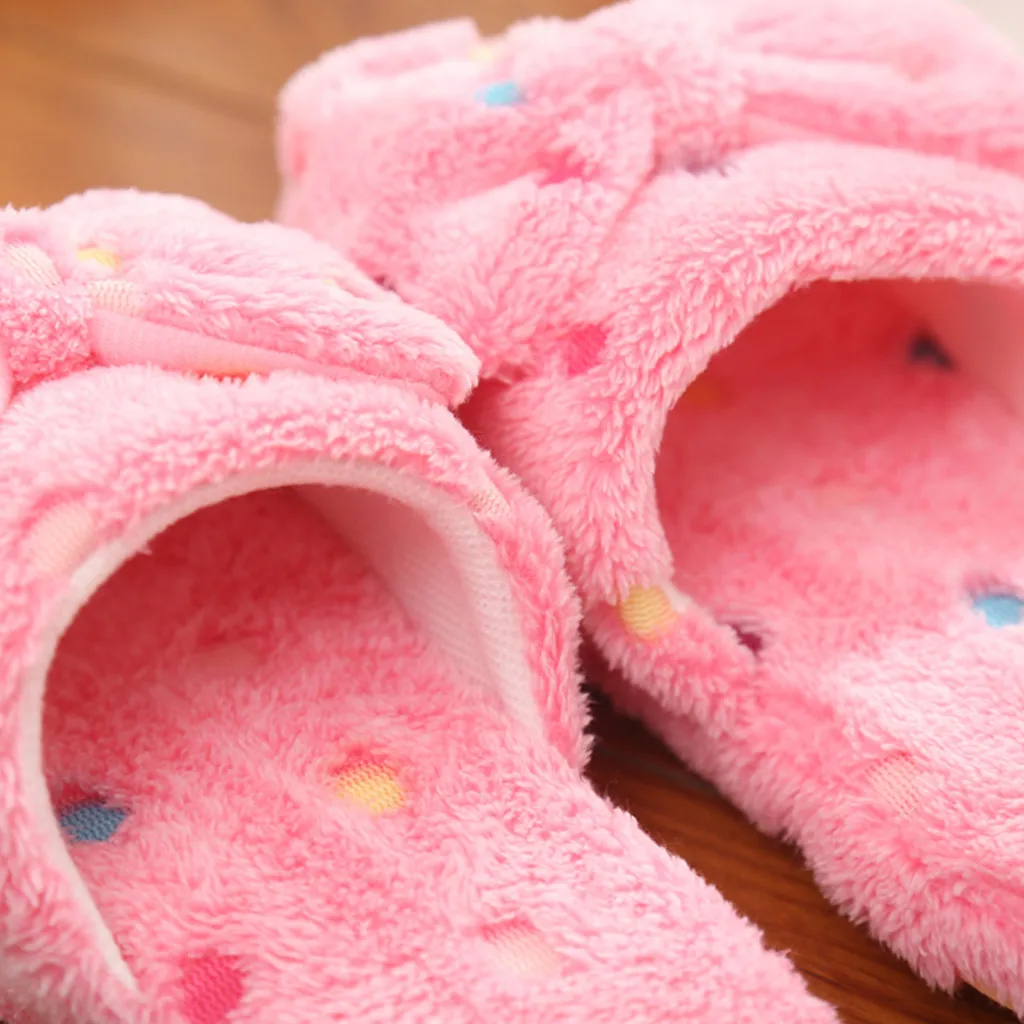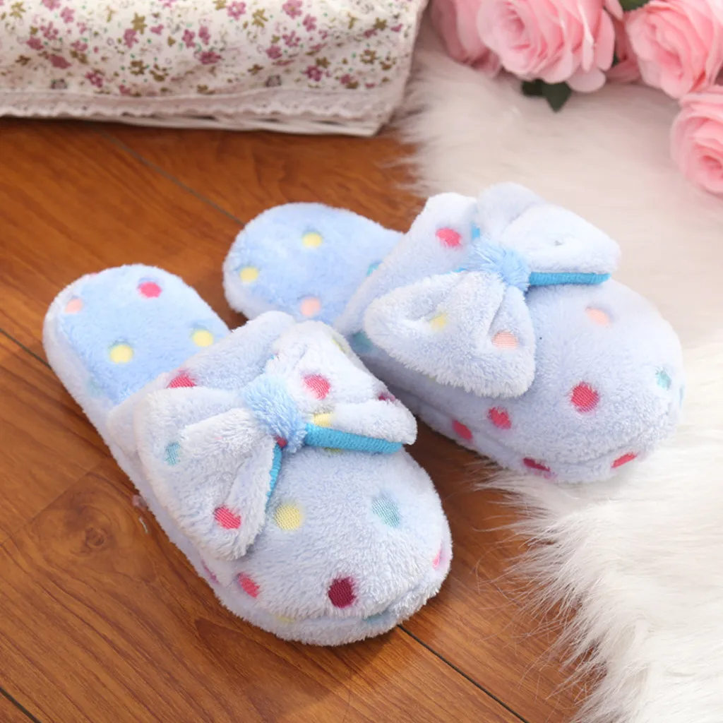 Новинка; женские хлопковые тапочки с бантиком; милые женские зимние теплые домашние тапочки на нескользящей подошве