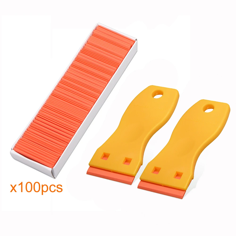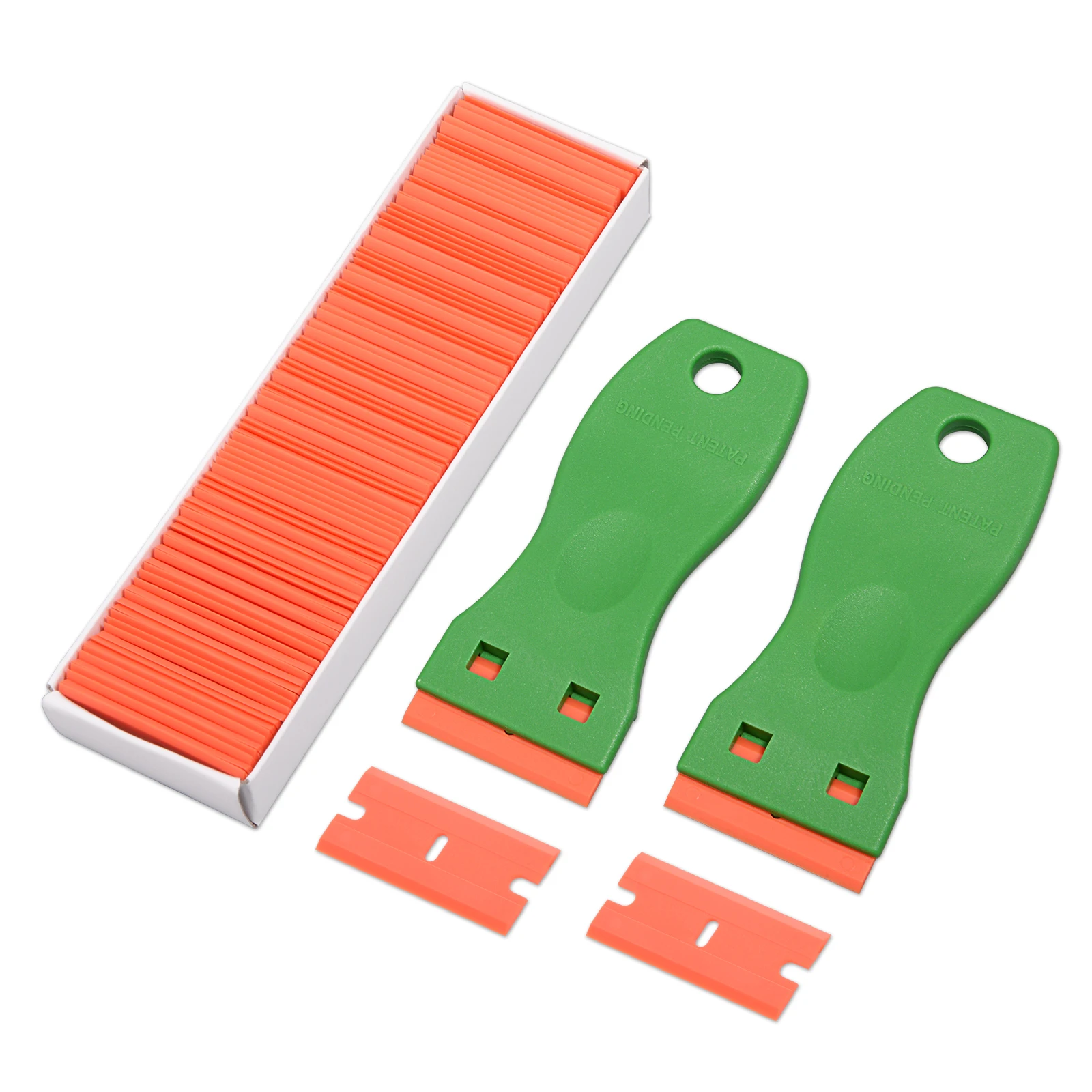 FOSHIO 2 шт. карбоновая пленка Бритва для чистого бритья скребок и 100 шт. 1,5 "двойное лезвие бритвы для автомобильного окна Тонировка автомобиля клей для наклеек Съемник