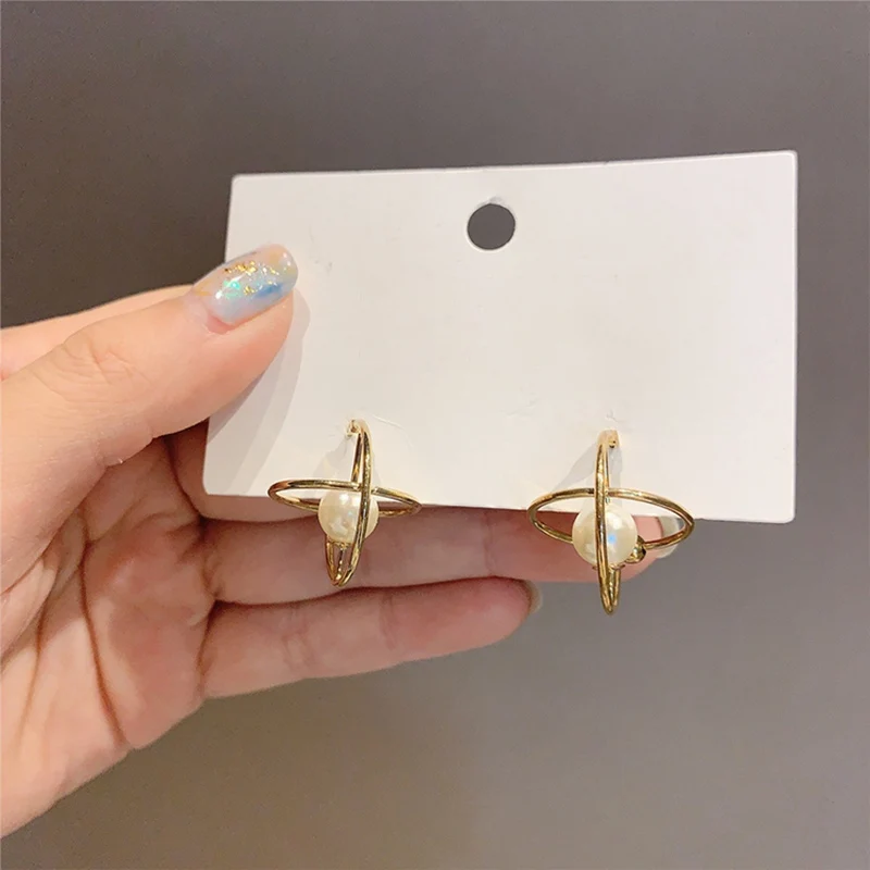 MWsonya New Design Metal Ball Hoop Earrings for Women Students Elegant Pearl Statement Geometric Brincos Party Jewelry