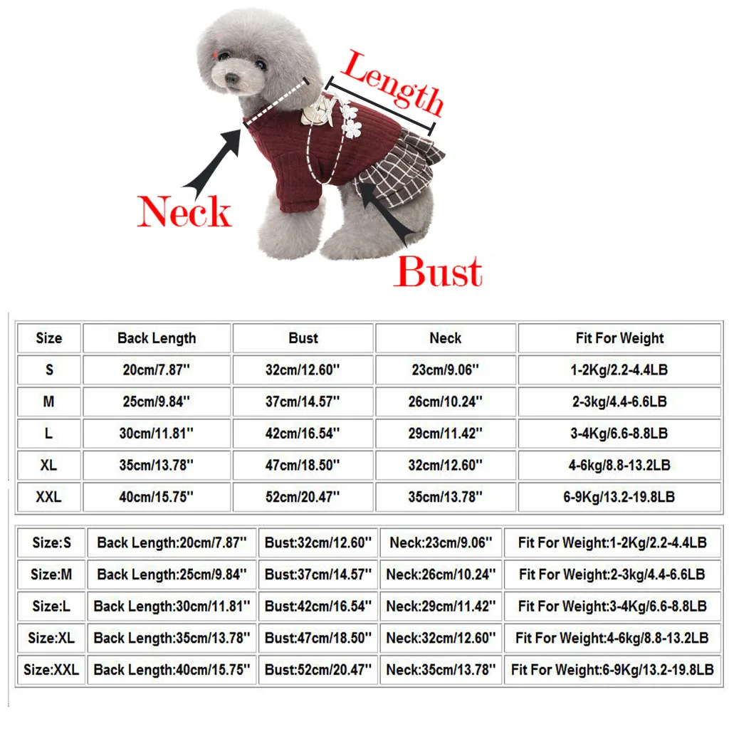 Размеры Длина спины Бюст Шея Подходит для веса S 20 см/7,87 дюйма 32 см/12,60 дюйма 23 см/9,06 дюйма 1-2 кг/2,2-4.4LB М 25 см/9,84 дюйма 37 см/14,57 дюйма 26 см/10,24 дюйма 2-3 кг/4,4-6.6LB L 30 см/11,81 дюйма 42 см/16,54 дюйма 29 см/11,42 дюйма 3-4 кг/6,6-8.8LB XL 35 см/13,78 дюйма 47 см/18,50 дюйма 32 см/12,60 дюйма 4-6 кг/8,8-13.2LB XXL 40 см/15,75 дюйма 52 см/20,47 дюйма 35 см/13,78 дюйма 6-9 кг/13,2-19.8LB