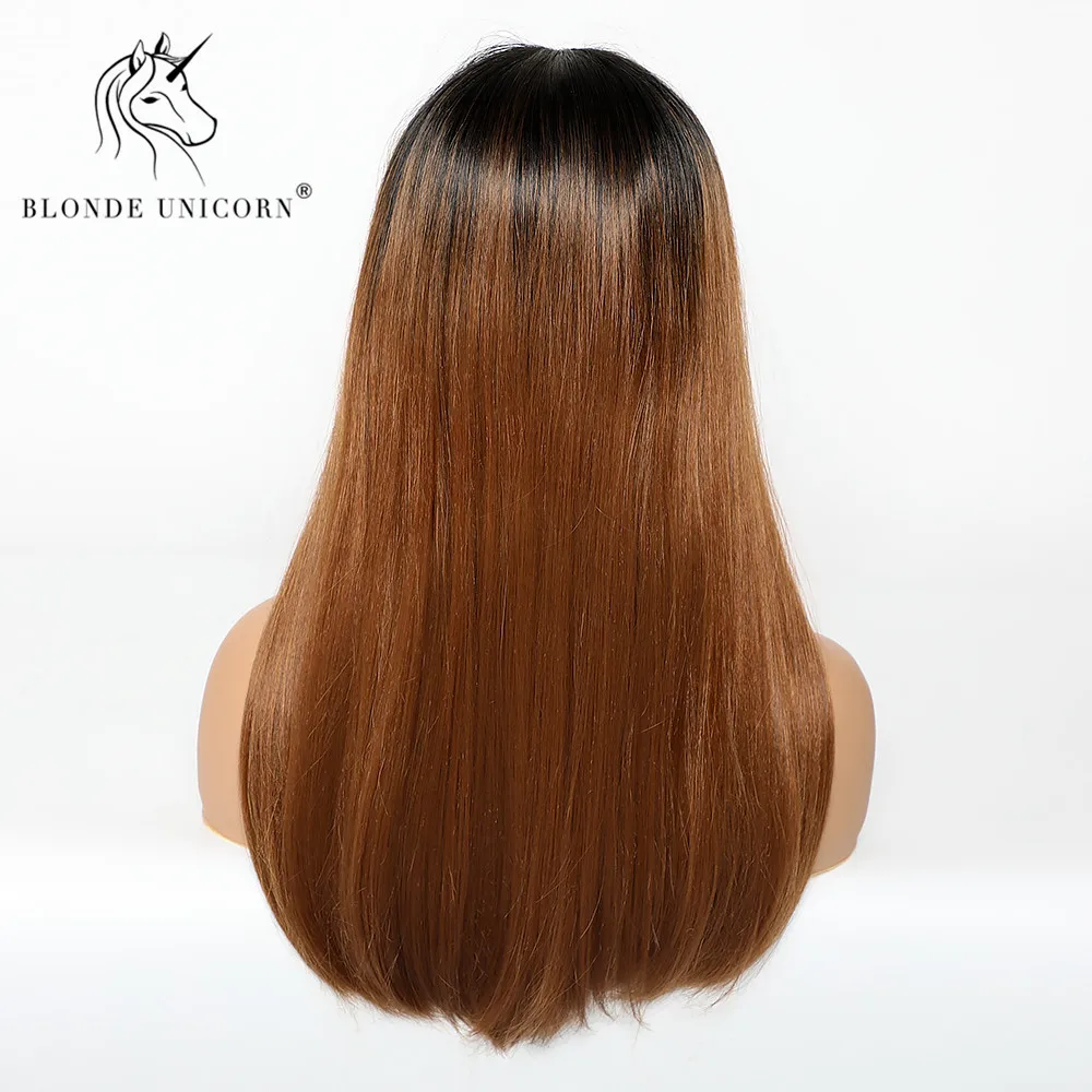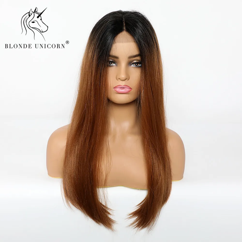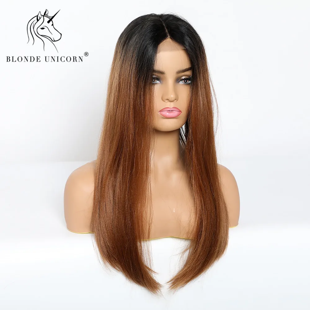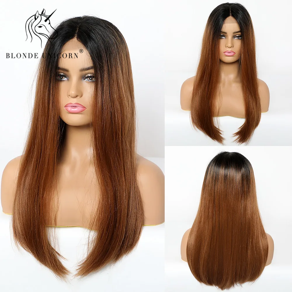 Блонд Единорог длинные прямые кружевные Передние синтетические парики Омбре коричневый центр парика для черно-белых женщин свадебные кружевные волосы