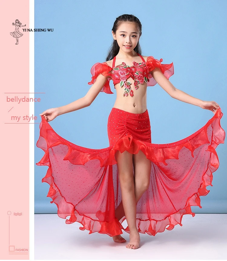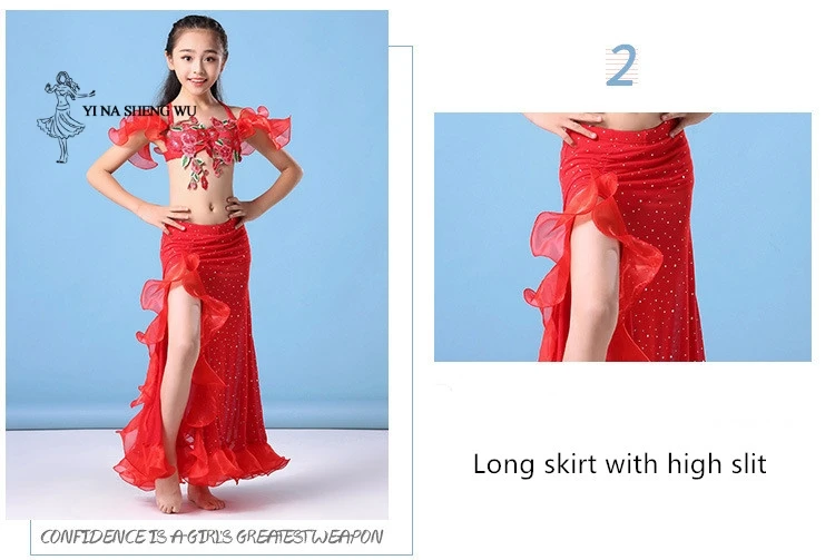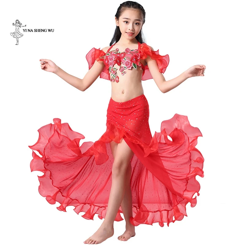Костюм для Танцев Живота для девочек; Новинка; 2 шт./компл.; Бюстгальтер + юбка для танца живота; Одежда для детей; Одежда для танцев в восточном стиле