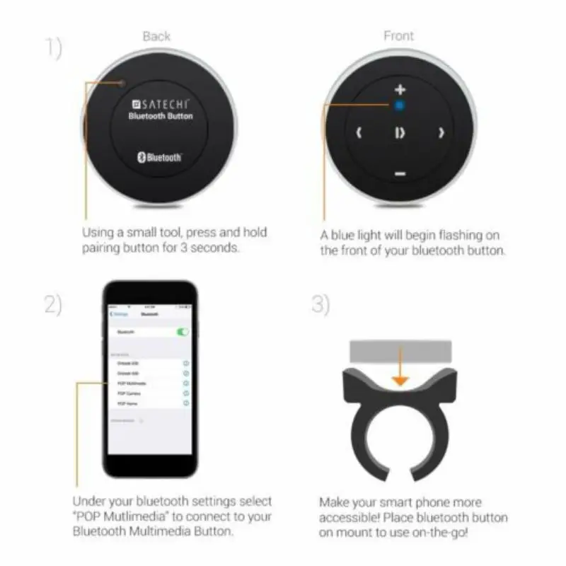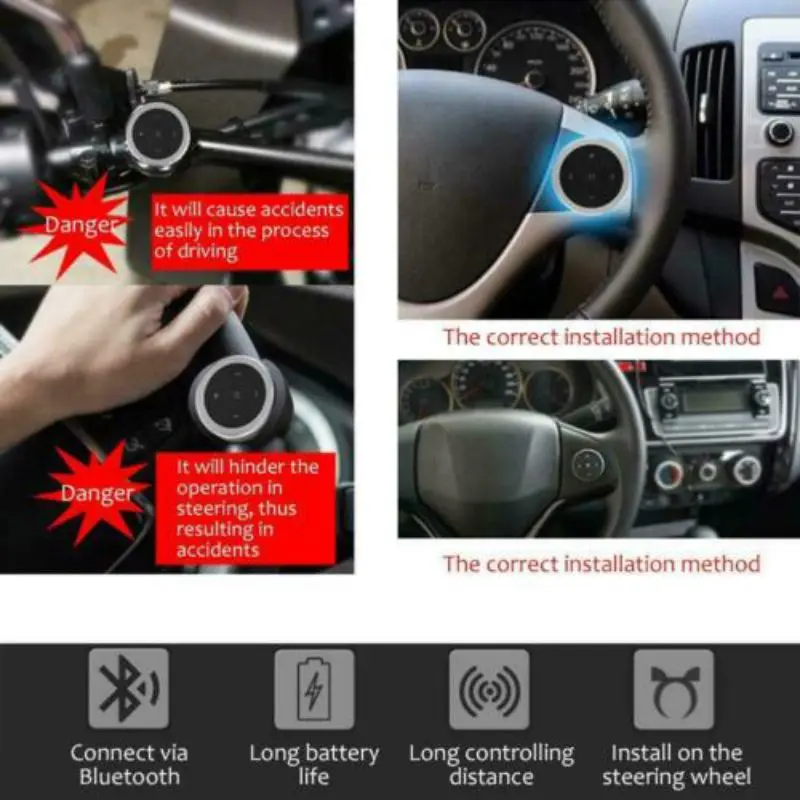 3. Используйте прилагаемое крепление, чтобы прикрепить медиа-кнопку к рулу или на руль велосипеда, что позволяет следить за дороге и руками за рулем.