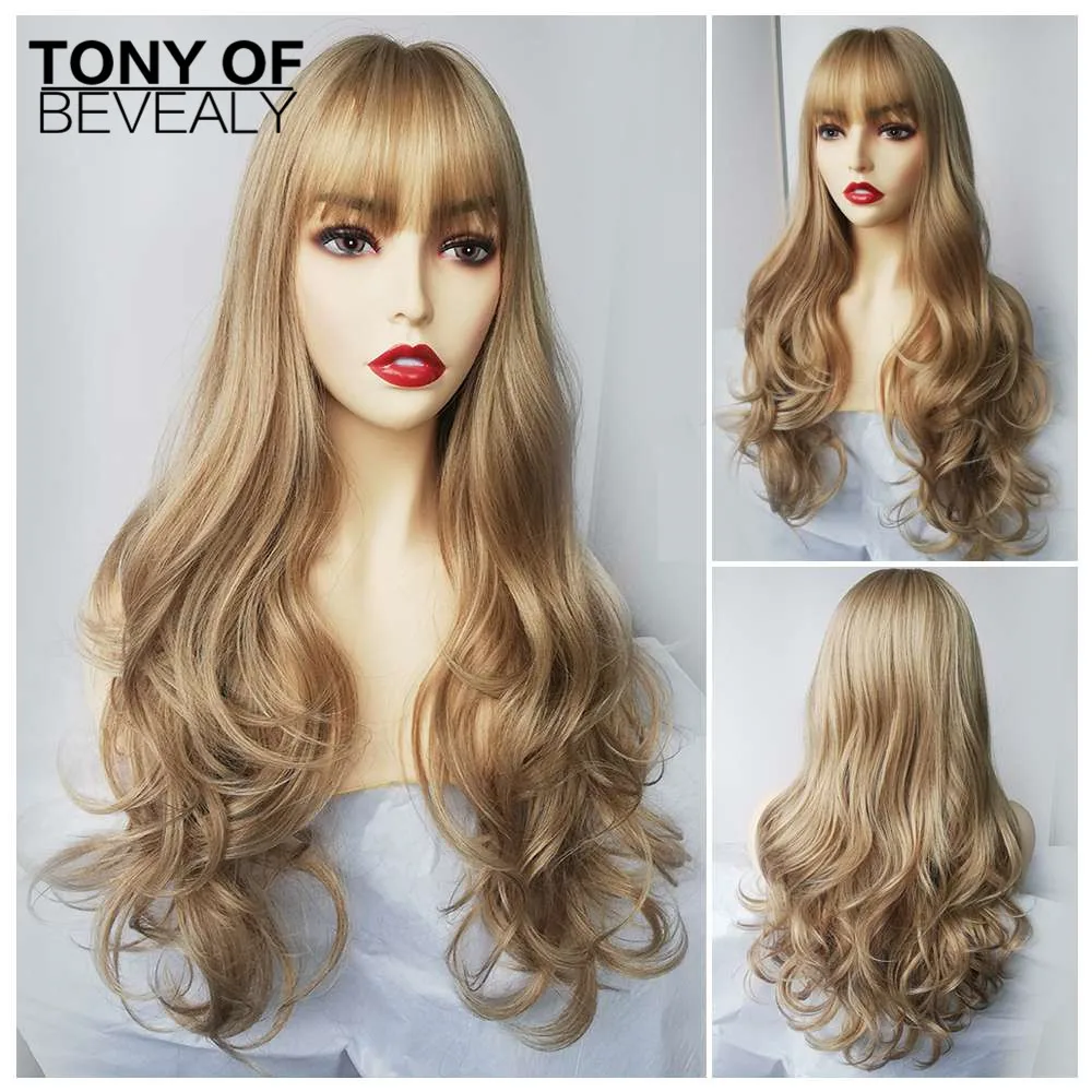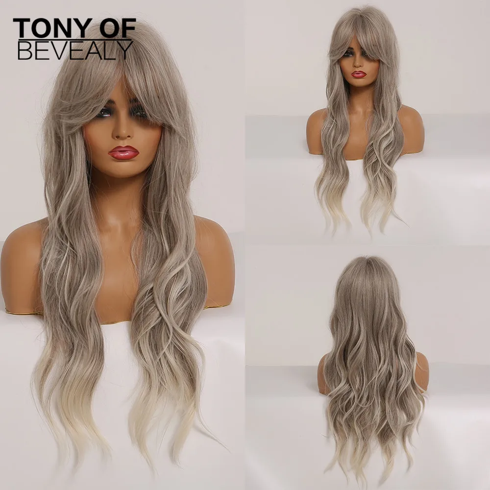 Длинные волнистые синтетические парики для черных женщин афро-американские Омбре коричневые натуральные волосы парики с челкой термостойкие косплей парики