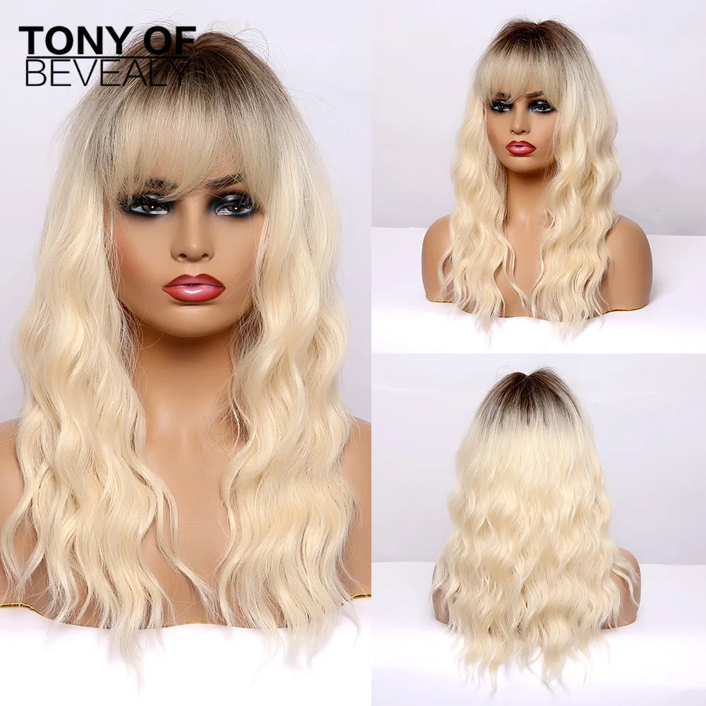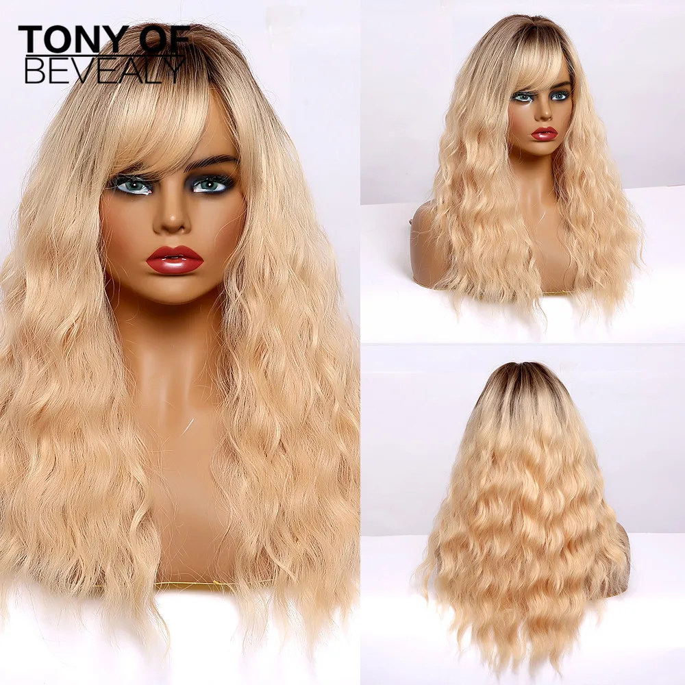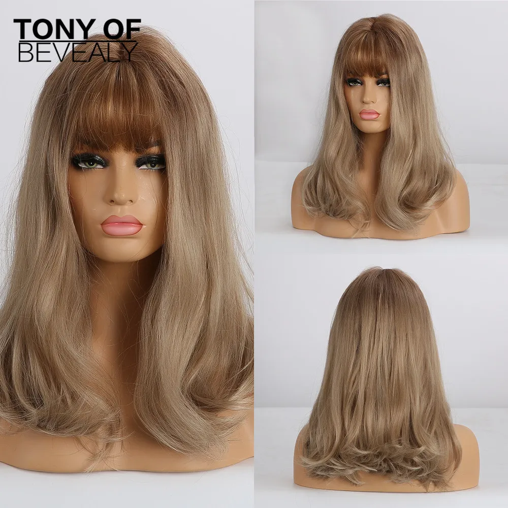Длинные волнистые синтетические парики с челкой Омбре коричневые парики для женщин натуральные повседневные парики из натуральных волос для вечеринки термостойкие волокна парики