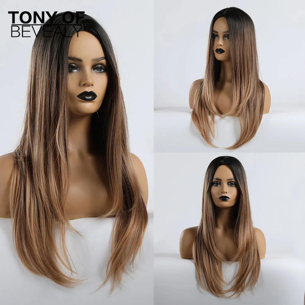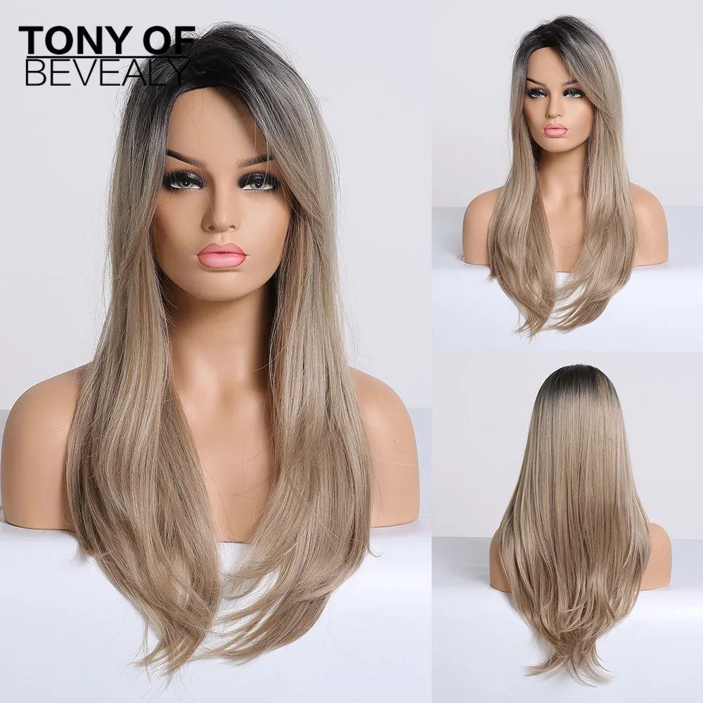 Длинные волнистые парики Омбре пепельно-коричневый с челкой синтетические парики для черных женщин Косплей натуральные волосы парики Термостойкое волокно
