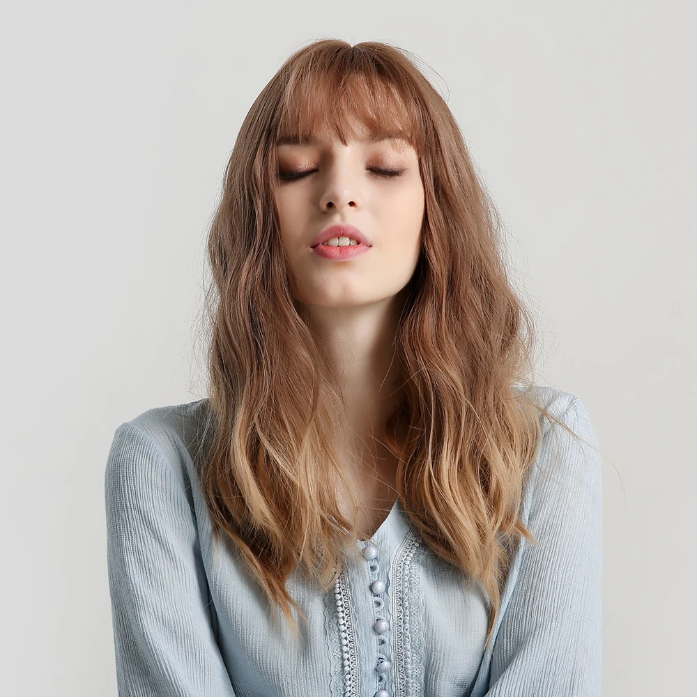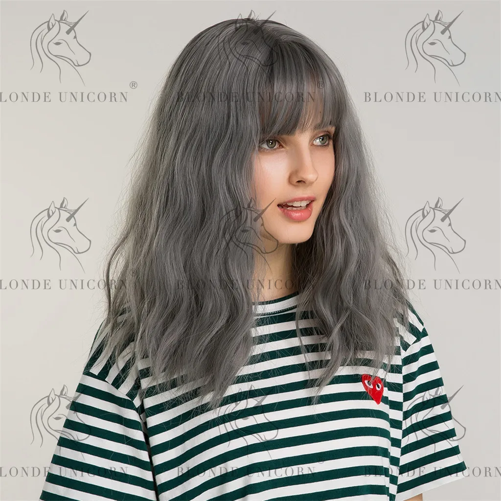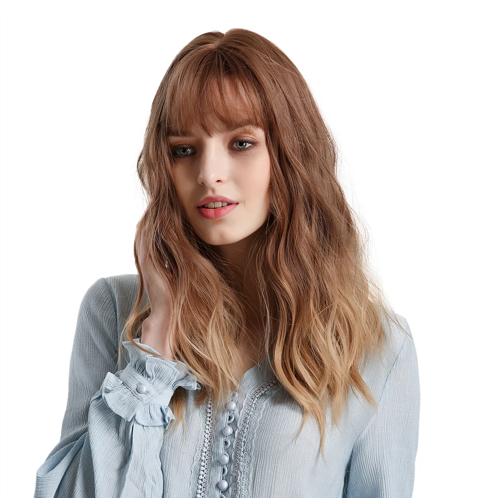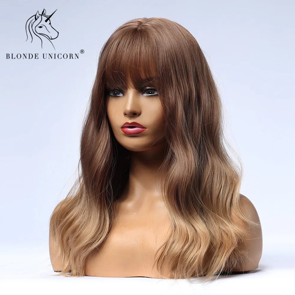 Блондинка Единорог длинные волнистые синтетические волосы парик с эффектом деграде (переход от темного к светильник густые накладные волосы парики с челкой ежедневно Косплэй накладные волосы парик для Для женщин