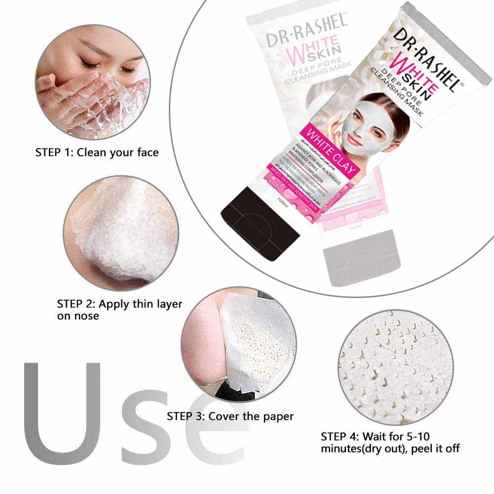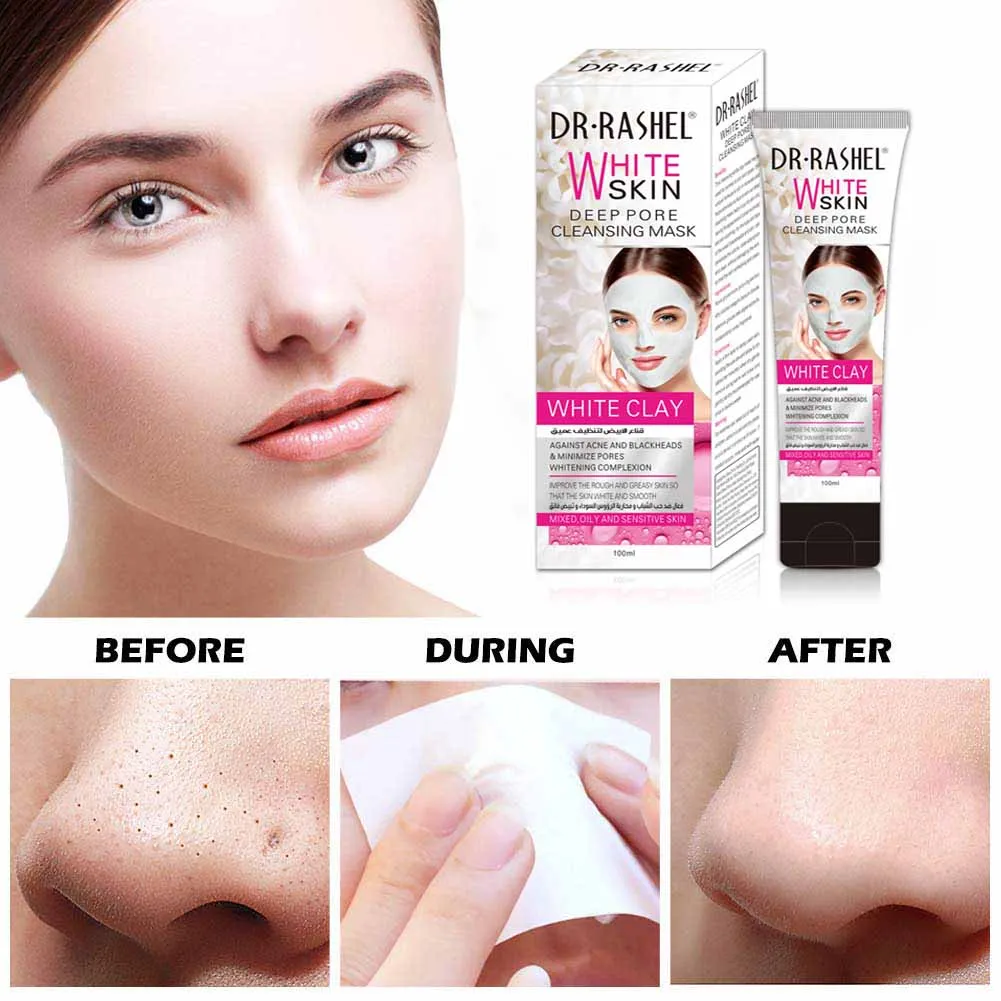 100 г белая глина, Очищающая маска для глубокой очистки пор, отбеливающая угри, средство для удаления акне, увлажняющее масло для контроля носа, полоски для очищения лица