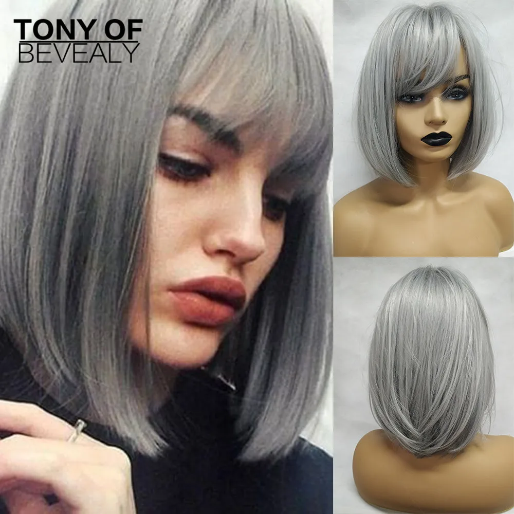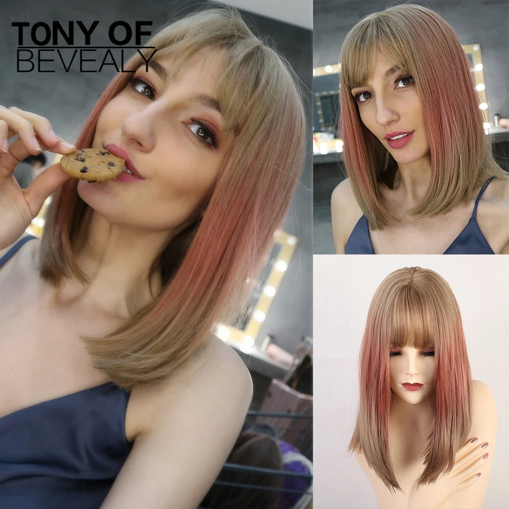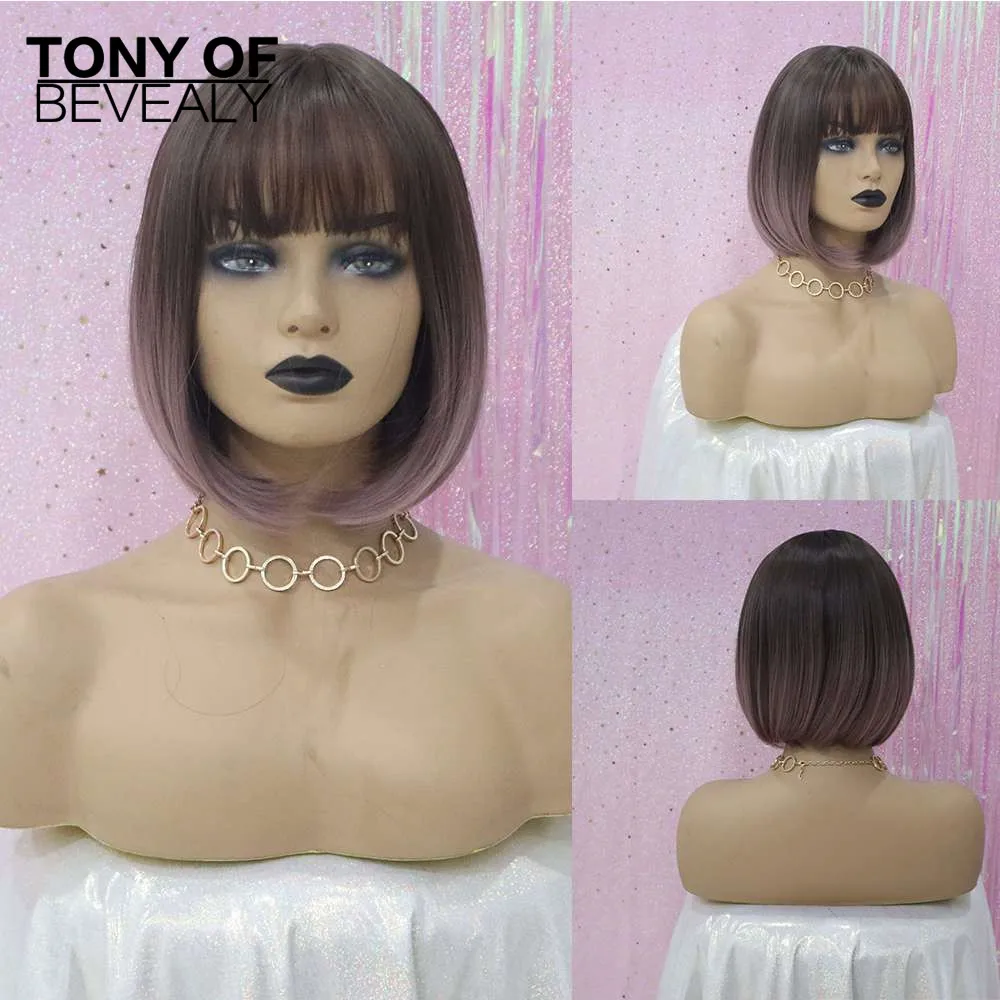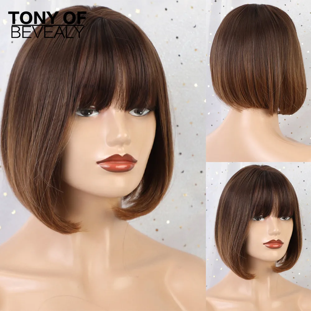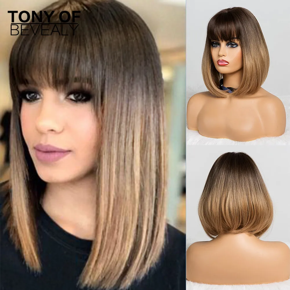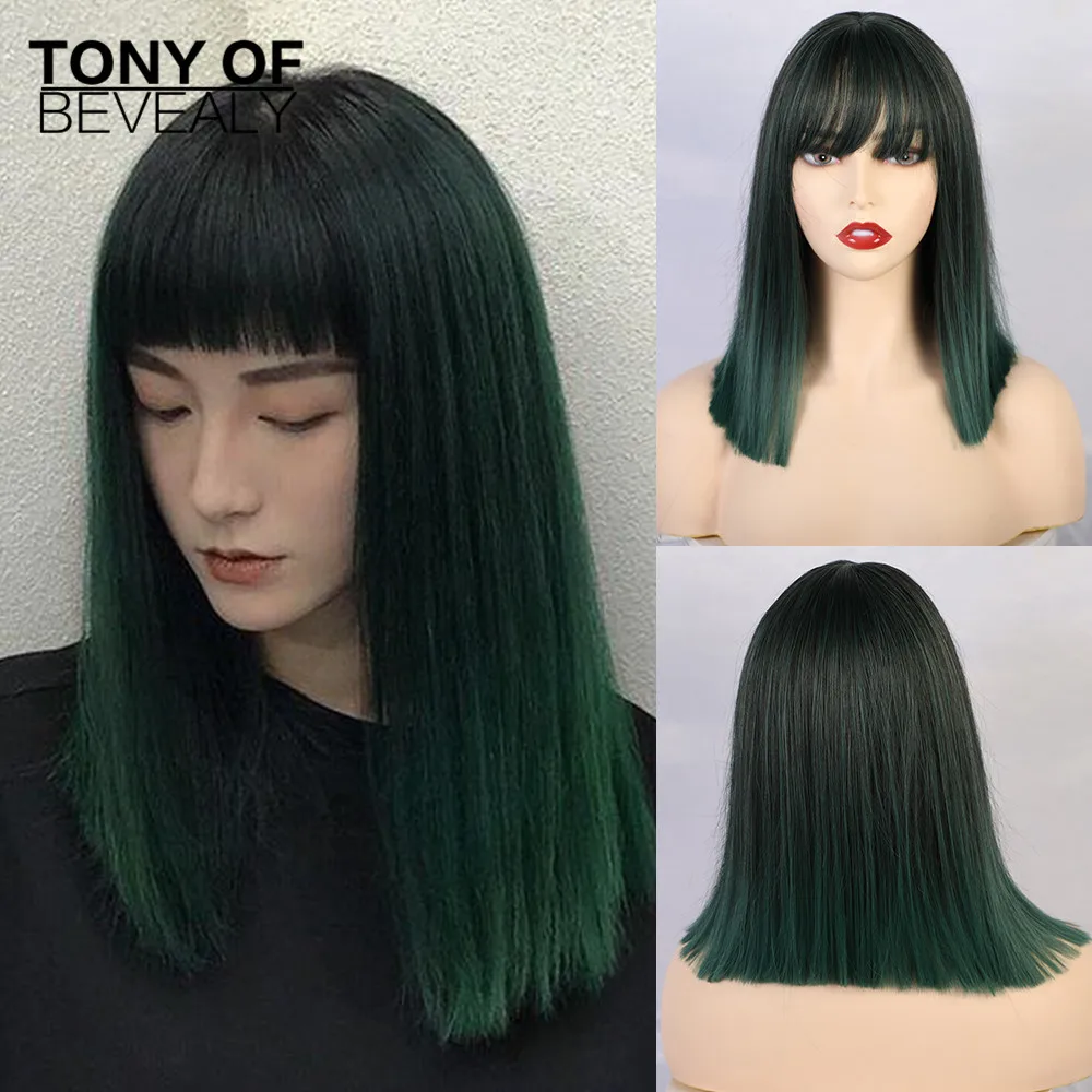 Средняя длина прямой синтетический парик с челкой для женщин смешанный темно-зеленый Боб Прическа натуральные парики на каждый день Термостойкое волокно