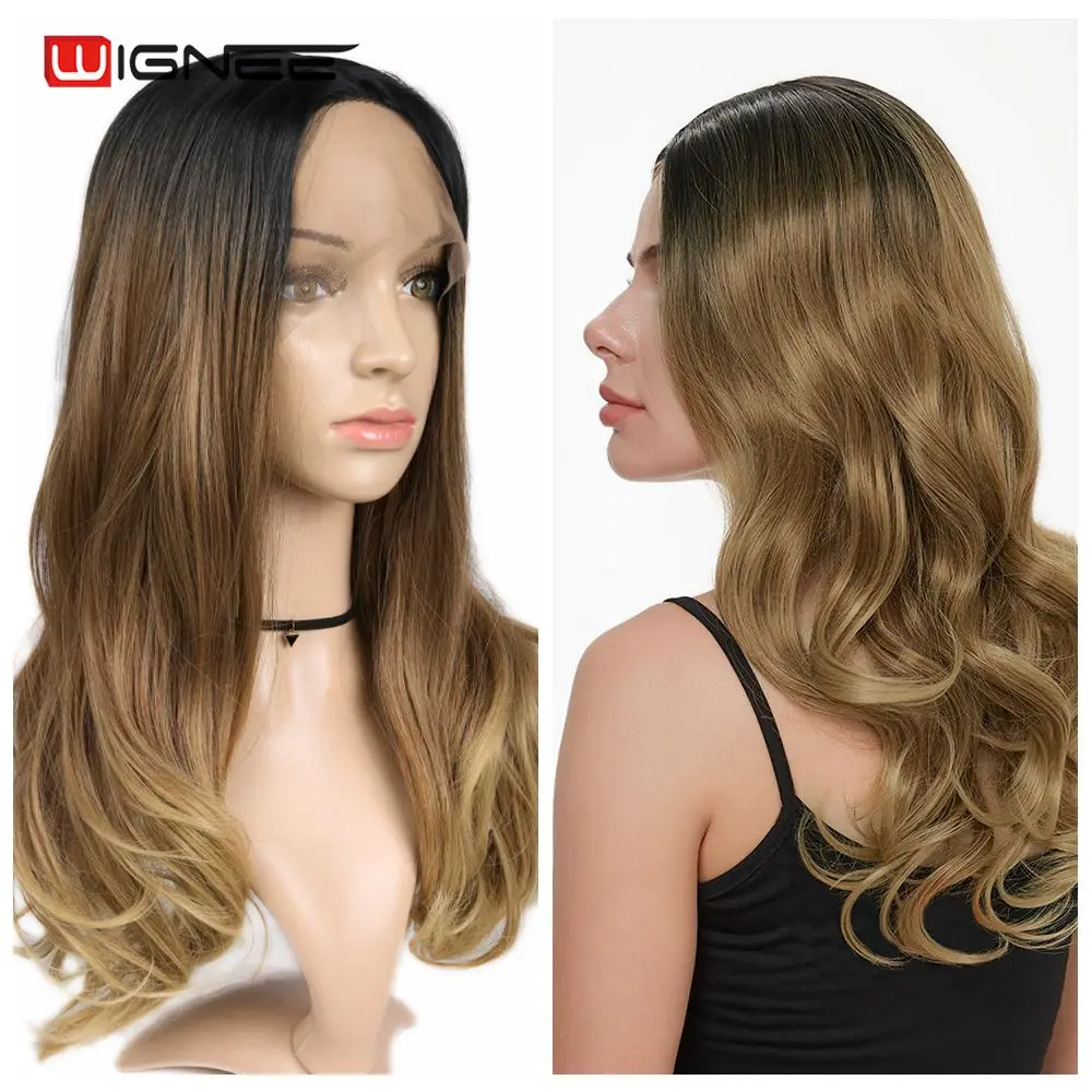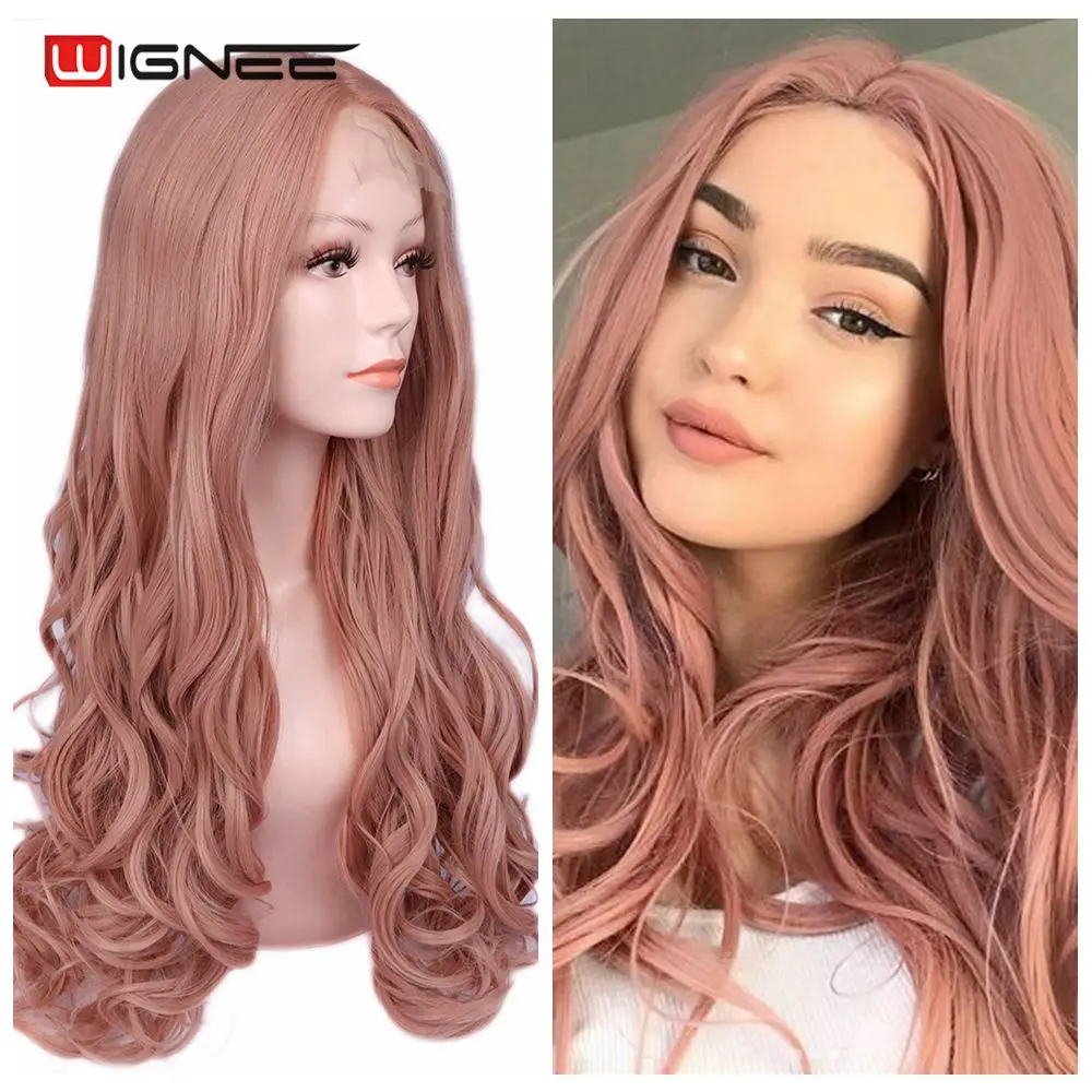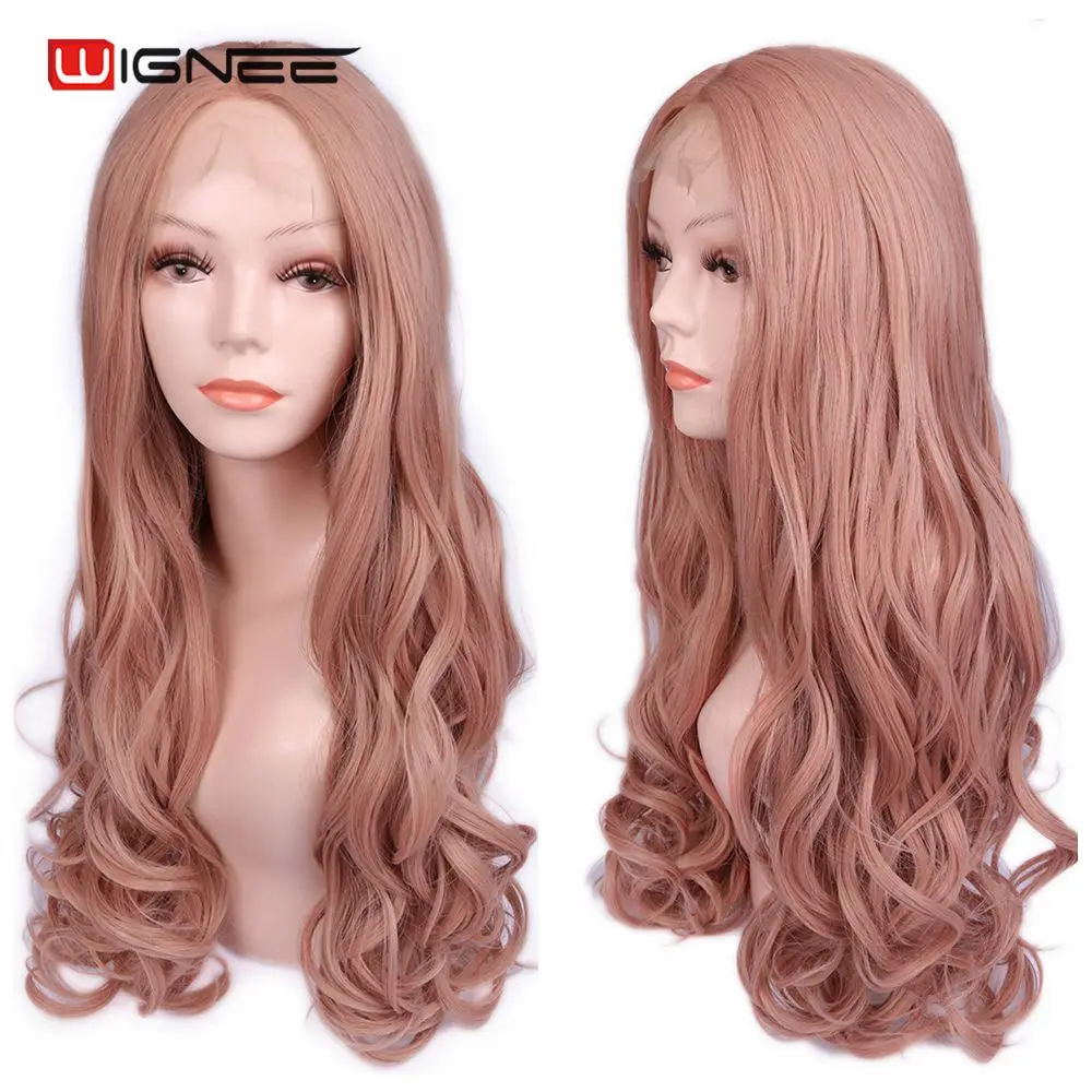 Парики из натуральных волнистых волос Wignee, парики из длинных волос розового/светлого/коричневого цвета