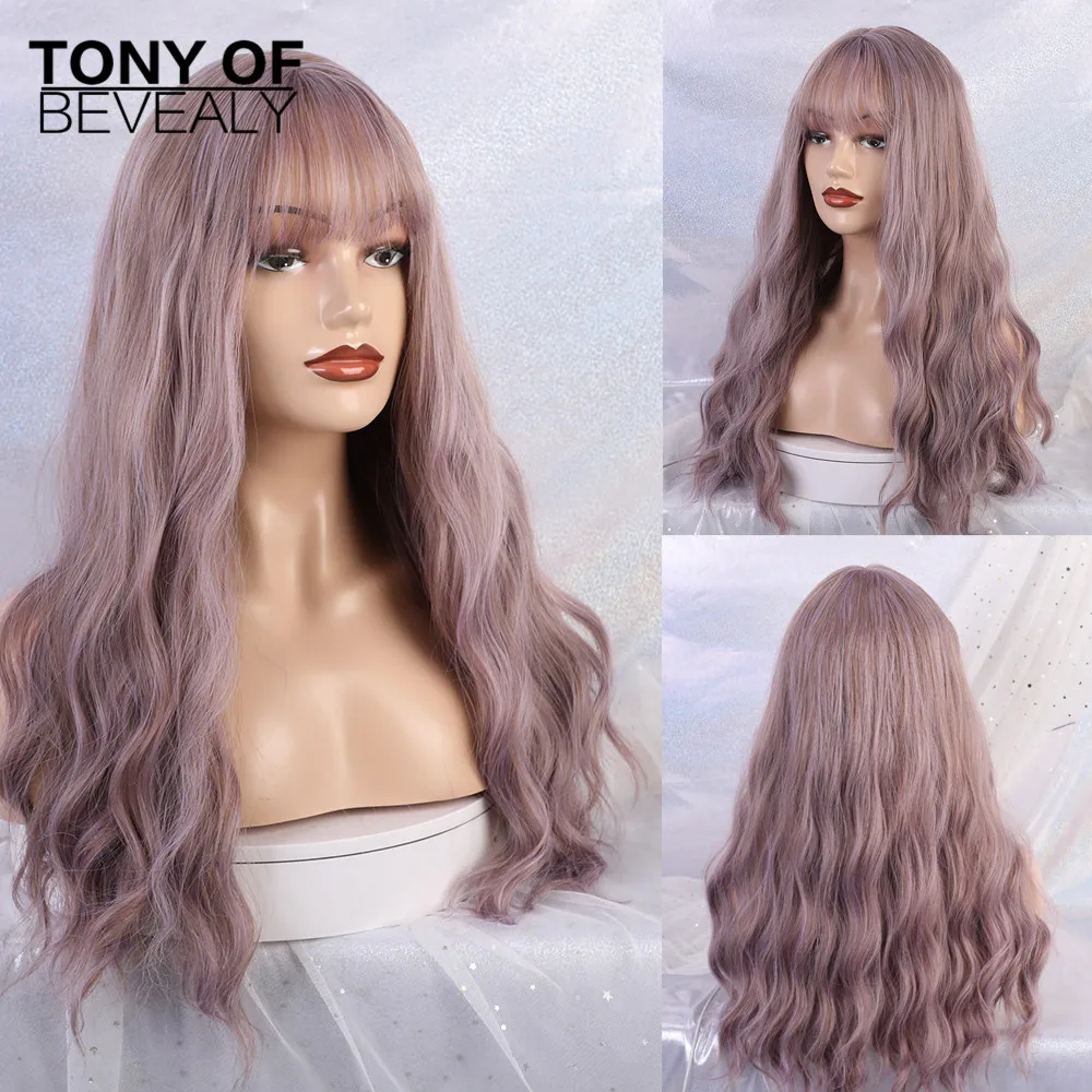 Синтетические парики, длинный волнистый светильник, коричневые натуральные волосы, парики с челкой для женщин, африканские и американские пушистые волосы, Термостойкое волокно