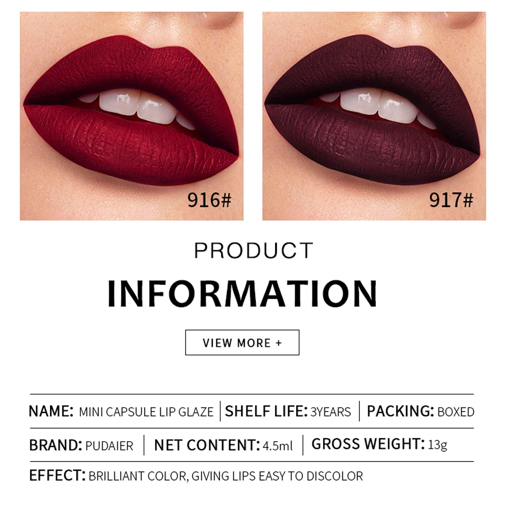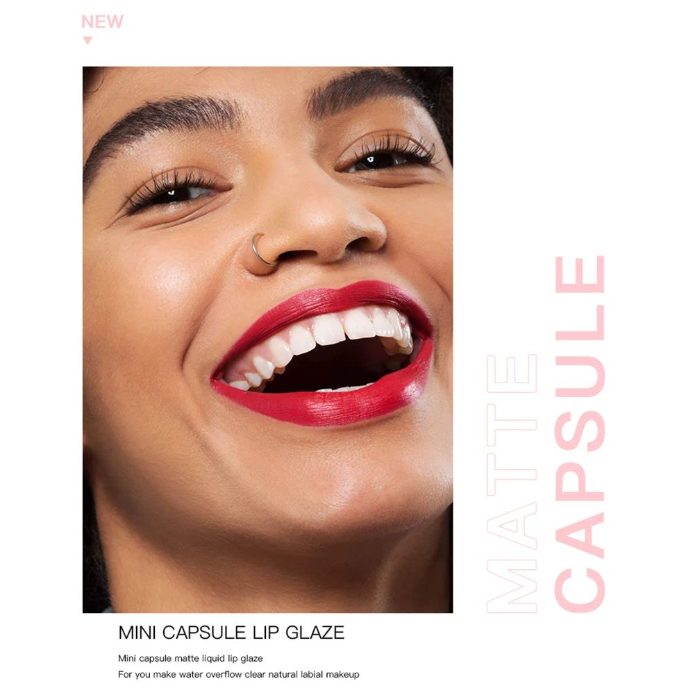 Название продукта: мини-капсула блеск для губ бархатистая жидкая помада матовая губная помада водонепроницаемый антипригарный блеск для губ длинная губная помада с эффектом длительного увлажнения
