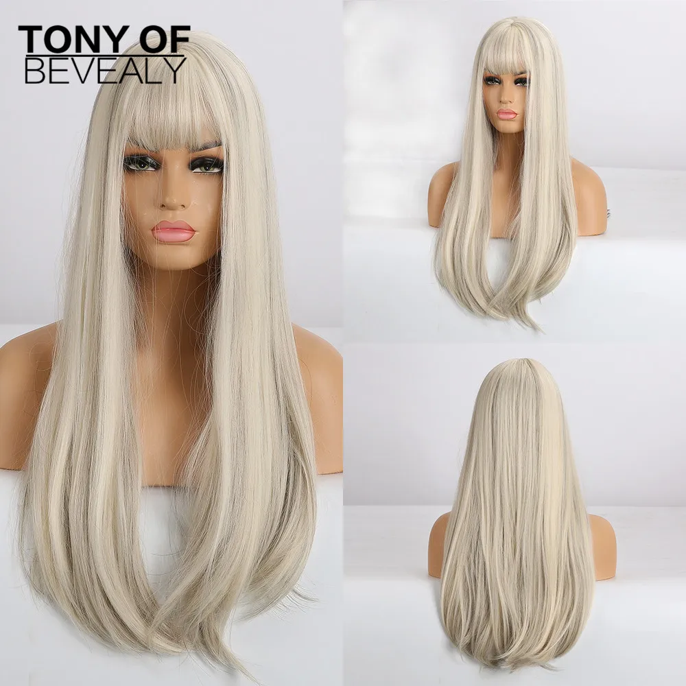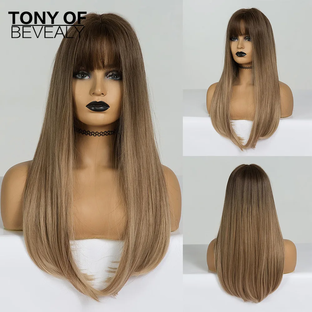 Длинные прямые черные парики термостойкие синтетические парики с челкой для женщин афро-американские натуральные повседневные парики из натуральных волос для вечеринки