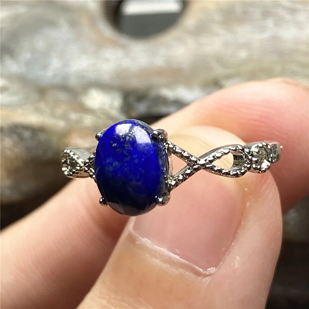 Топ натуральный Королевский синий Lapis кольцо для женщины годовщина любовь подарок 8x6 мм бусины кристалл драгоценный камень регулируемое кольцо ювелирные изделия AAAAA