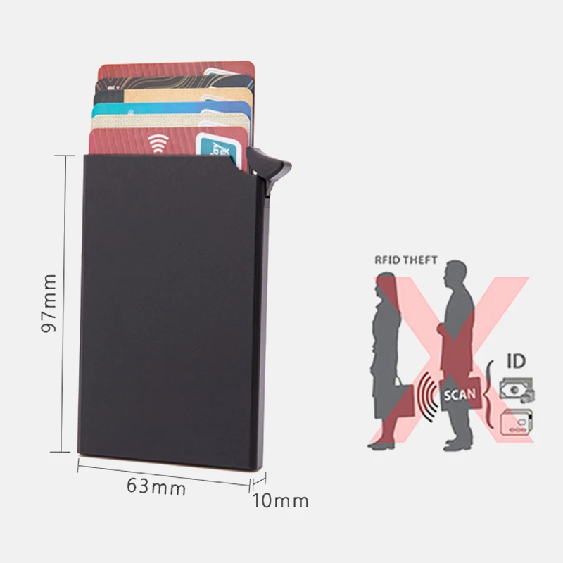 1) Безопасность, конфиденциальность и безопасность: RFID Блокировка всплывающего бумажника для кредитных карт может идеально блокировать нежелательные RFID сканеры, включает технологию блокировки RFID, чтобы предотвратить несанкционированный доступ к личной информации, защитить ваши RFID кредитные карты, дебетовые карты, ID-карты из электронного кармана.