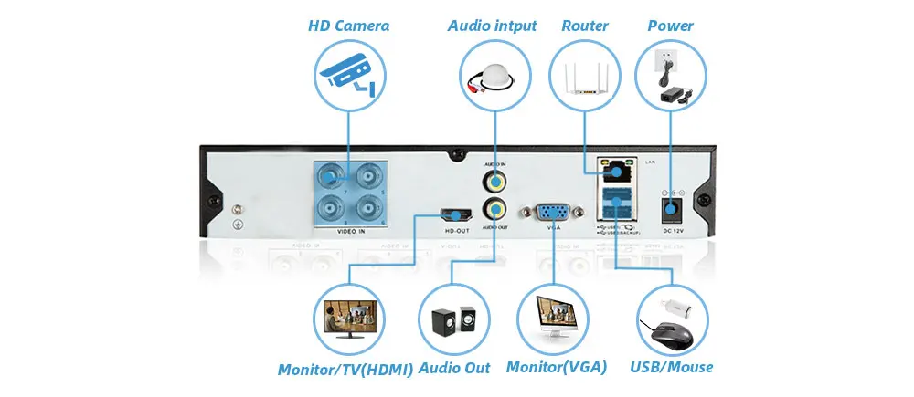 Простая настройка, всего 4 шага для просмотра мобильный телефон, просмотра видео в режиме реального времени из любого места и в любое время с помощью смартфона, стола или ПК с передовой технологией P2P, вы можете получить удаленный доступ к вашей системе за считанные минуты или меньше, нет необходимости в переадресации, удаленный доступ никогда не был таким простым!