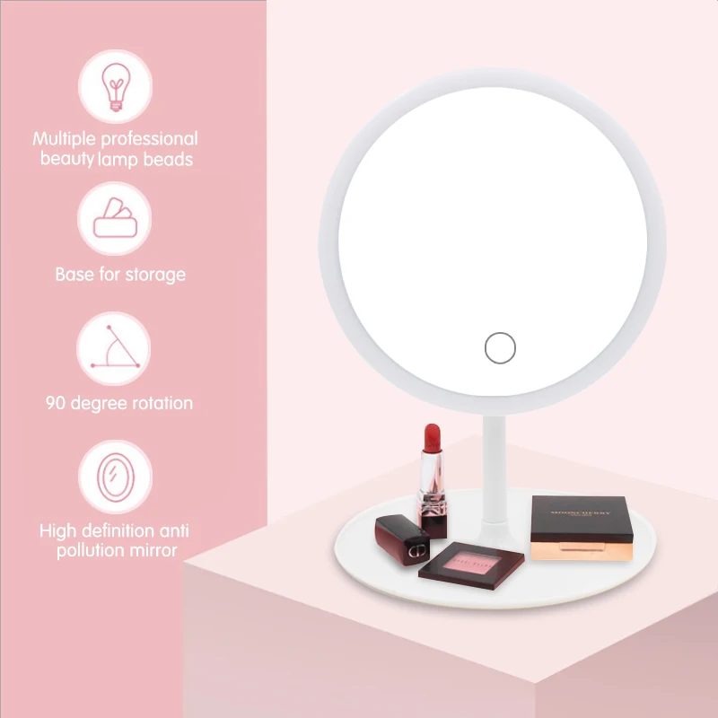 Пункт продажи товара: * Лучший дизайн-круглая форма может одновременно отражать все лицо и шею * Нанесение полного макияжа намного проще, чем с традиционными круговыми зеркалами. * Натуральный белый светодиодный светильник-прозрачный стеклянный экран обеспечивает естественное освещение в любой среде и устраняет раздражающие тени из окружающих источников светильник. * Супер портативный-основание отсоединяется от зеркального лица для легкой упаковки во время путешествия * Сенсорный выключатель-Цикл Через 3 уровня яркости, просто прикоснувшись к сенсорной панели на зеркальной поверхности. Более длительный срок службы, чем традиционные кнопки. * Легко упаковать и транспортировать: наборы могут быть разделены на 3 части для супер легкой упаковки во время путешествия.