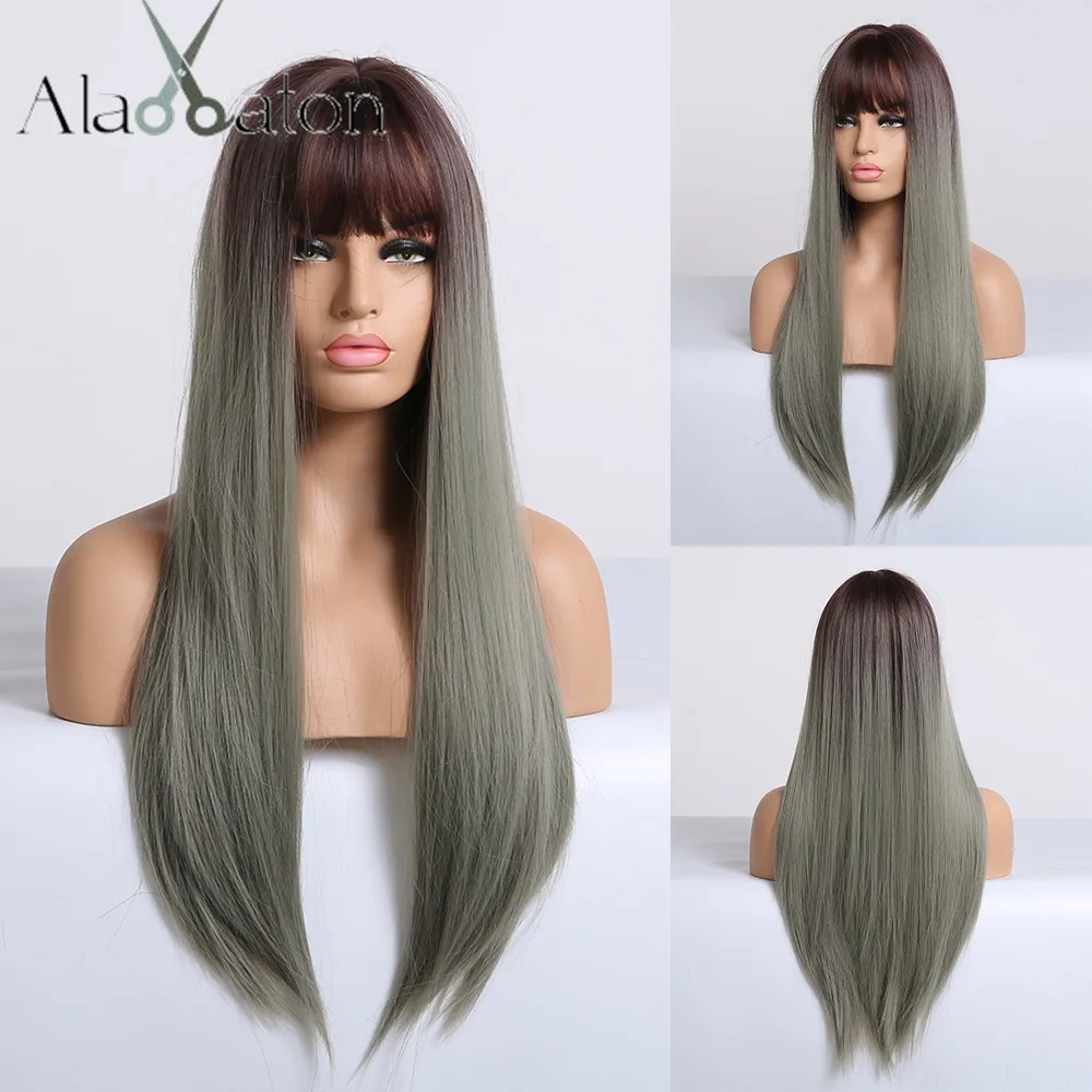 ALAN EATON, черный длинный прямой парик с челкой, синтетические волосы, парики для женщин, Термостойкое волокно, карнавальный костюм, парик
