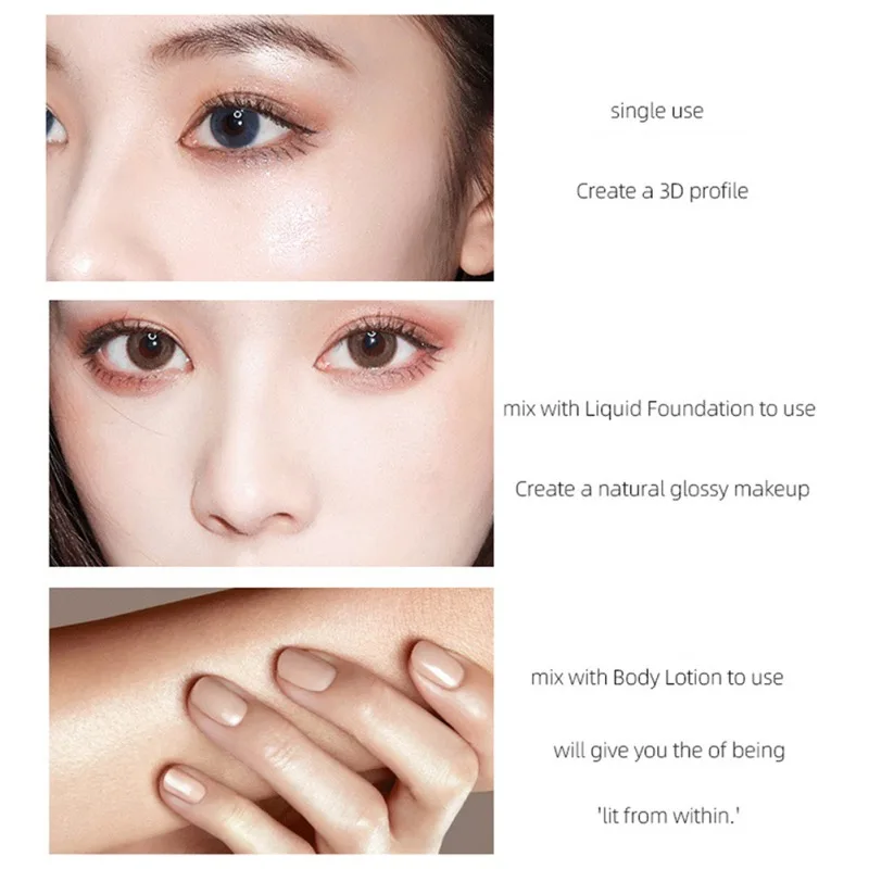 2. Используйте их только для того, чтобы светильник с отражающим эффектом или бронзирующим эффектом даже поверх пудры, для вашего любимого жидкого тонального крема или средства по уходу за кожей для полного свечения.