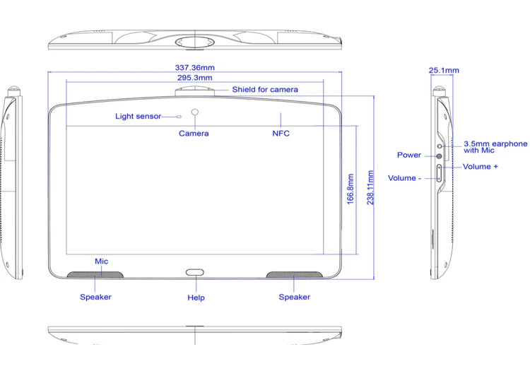 Система CPU: четырехъядерный процессор cortex A17, 1,8G,RK3288 ОЗУ: 2 Гб ПЗУ: 16 Гб Операционная система: Android8.1 Дисплей Дисплей: 10-ёмкостный сенсорный Панель: 13,3 "ЖК-дисплей IPS Панель Разрешение: 1920*1080 Активная область: 293,76 (H)x165.24(V) Режим отображения: обычно черный, IPS Угол обзора: 89/89/89/89(L/R/U/D) Контрастность: 700:1 Яркость: 250 cdm2 Соотношение сторон: 16:9 Сеть WiFi: 802.11b/g/n Ethernet: 100 м/1000 м Bluetooth: Bluetooth 4,0 Входной/выходной порт RJ45 с поддержкой POE Серийный порт * 2 Micro usb * 1 DC in Кнопки сбоку Разъем для наушников AUX/3,5 мм Включение/выключение питания Увеличение громкости Уменьшение громкости Медиаформаты Формат видео: MPEG-1,MPEG-2,MPEG-4,H.263,H.264,VC1,RV и т. д., поддержка до 4k Формат аудио: MP3/WMA/AAC и т. Д. Фото: jpeg Прочее Настенный кронштейн: 100*100 мм Динамик: 2*2 Вт Камера: 2,0 м/п, фронтальная камера Микрофон: интегрированный Язык: многоязычный Рабочая температура: 0-40 градусов Аксессуары Адаптер питания 12V, 1A Руководство пользователя Для получения подробной информации см. Таблицу товаров ниже,