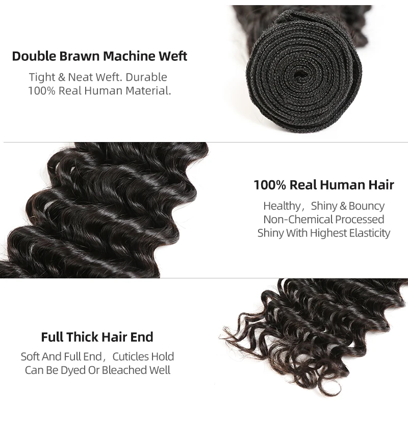 Тип застежки шнурка: 4x4, закрытие шнурка/13x4, фронтальная кружевная лента с вытянутой лентой для волос Кружевная ткань: Перуанская глубокая волна Длина застежки шнурка: в наличии 10-20 дюймов