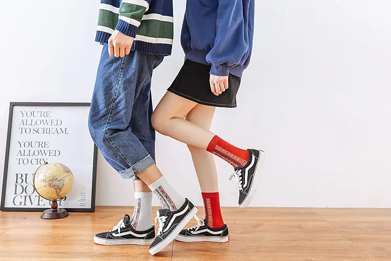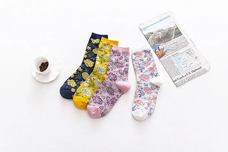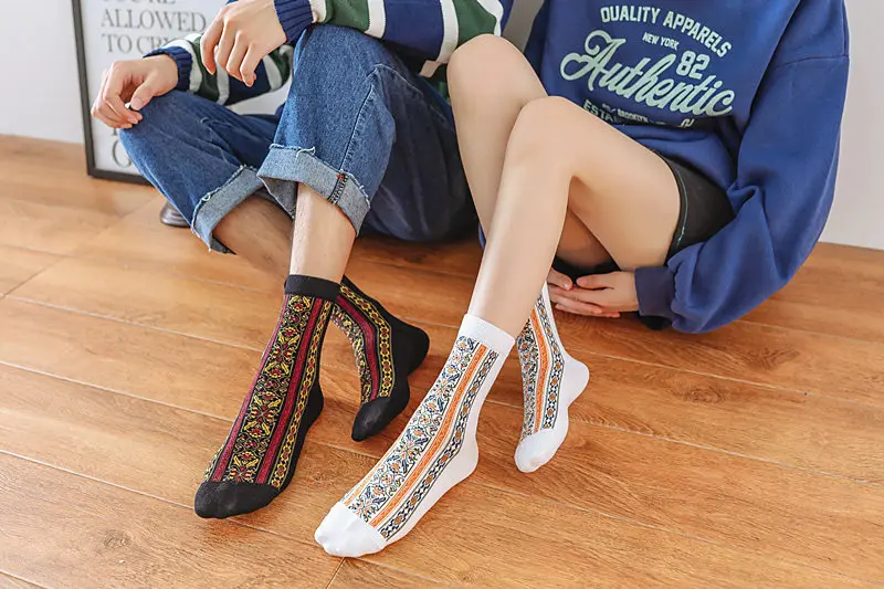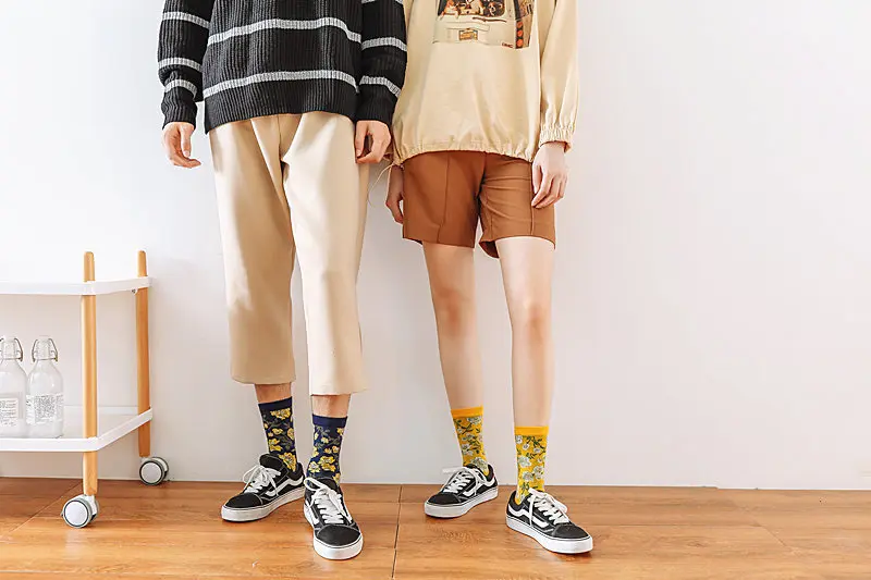 Женские хлопковые носки с цветочным принтом, оригинальные повседневные удобные носки для пар, модные уличные носки