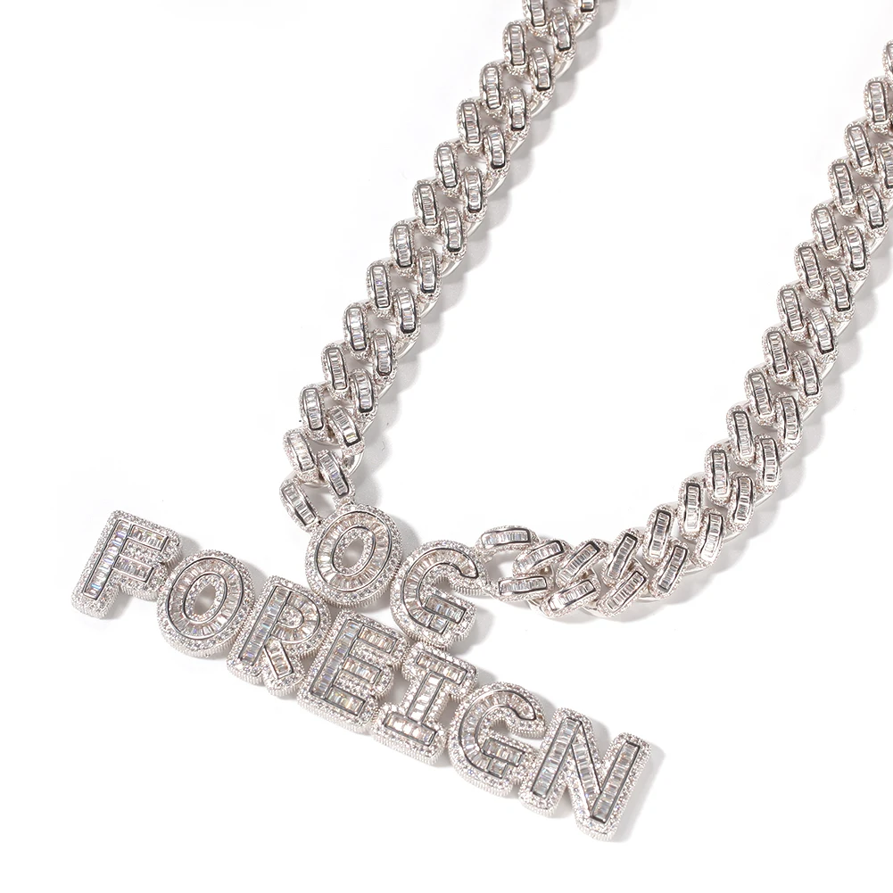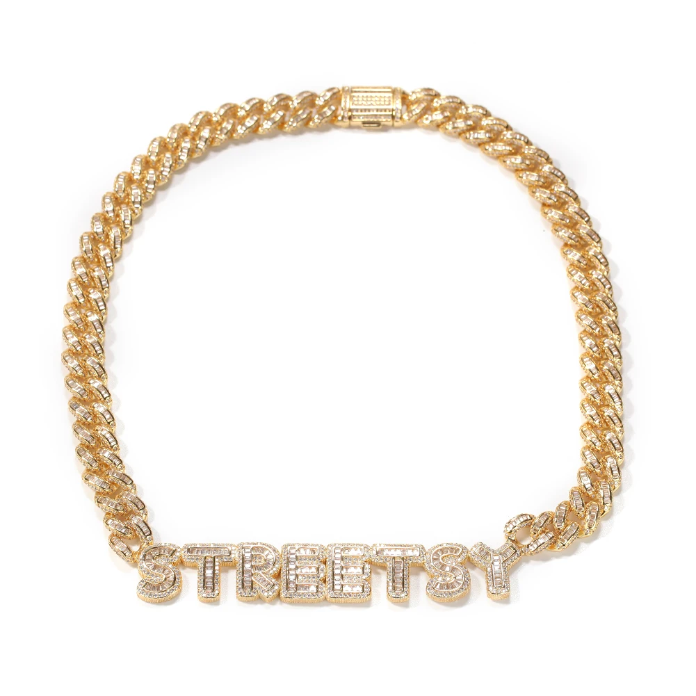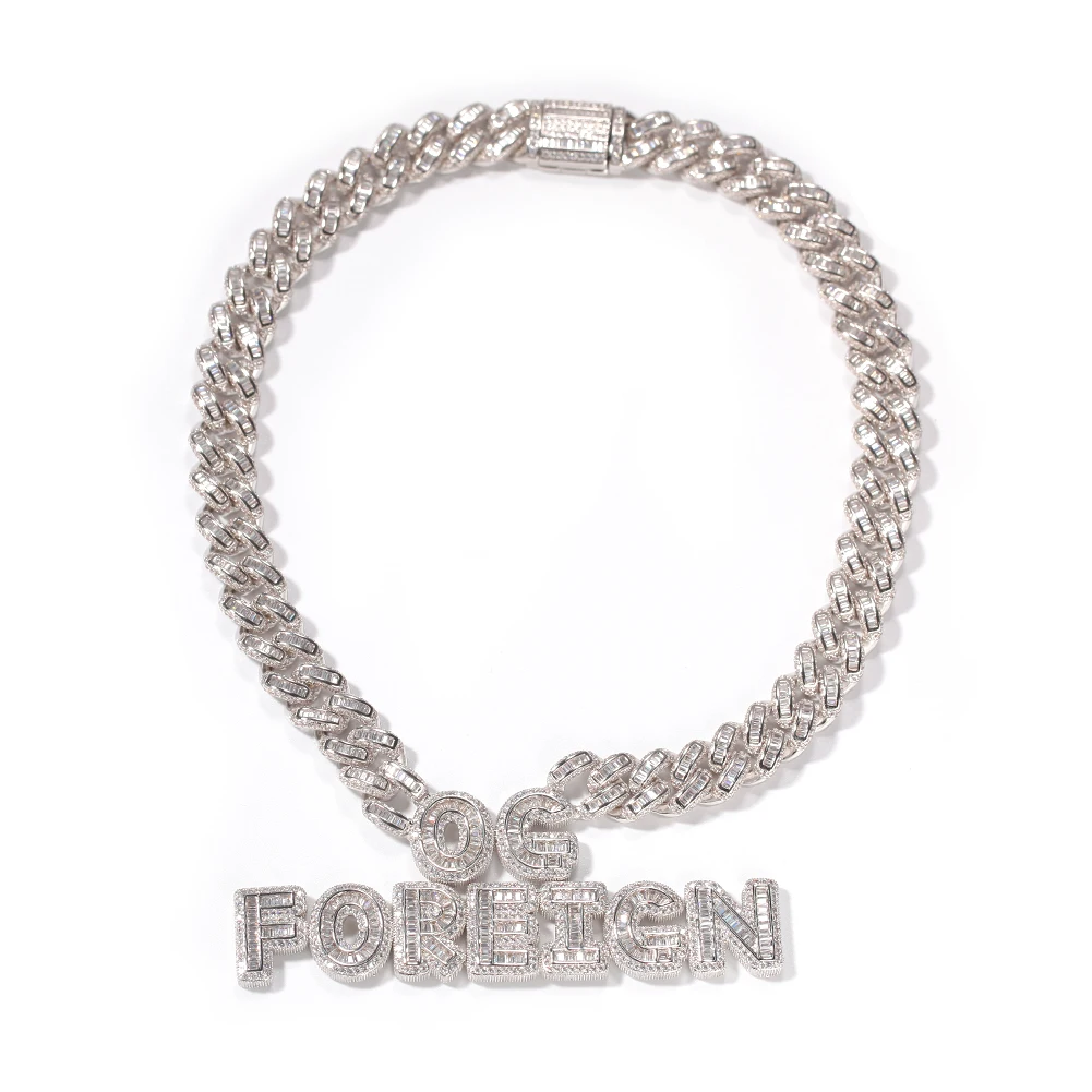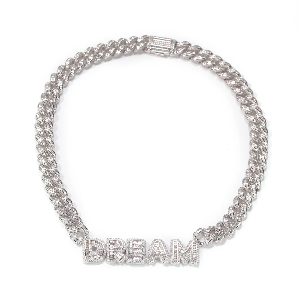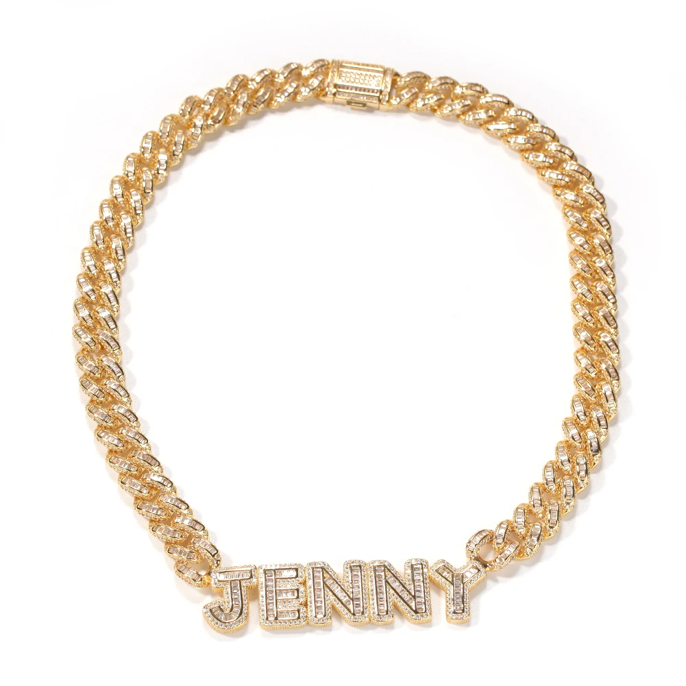 Шикарный король 2020 Miami кубинское звено багет ожерелья собственные слова Sqaure CZ цепочка розовое золото DIY стиль панк