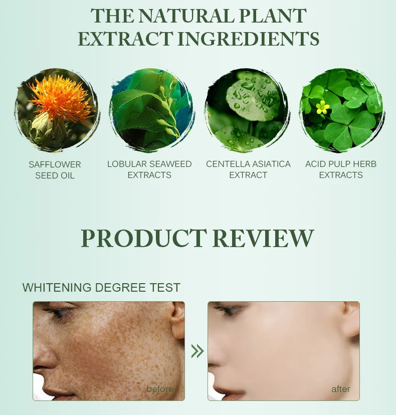 Кожа становится ярко-белой и прозрачной и блестящей, чистая текстура не липкая, легко наносится, после использования кожи тусклая кожа чувствует себя комфортно, решает проблемы из источника атаки, кожа становится чистой и яркой!