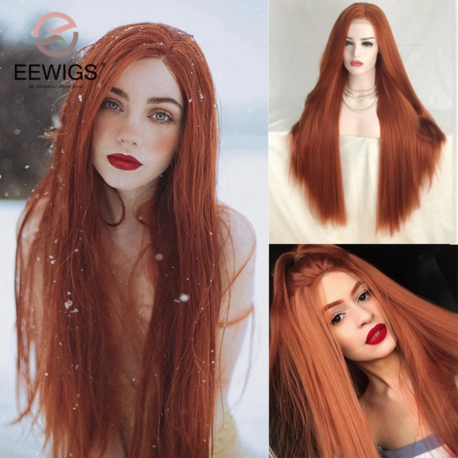 #360 имбирный синтетический парик на шнурке спереди ярко-розовый термостойкий перетащить королеву длинный прямой оранжевый красный косплей женский парик