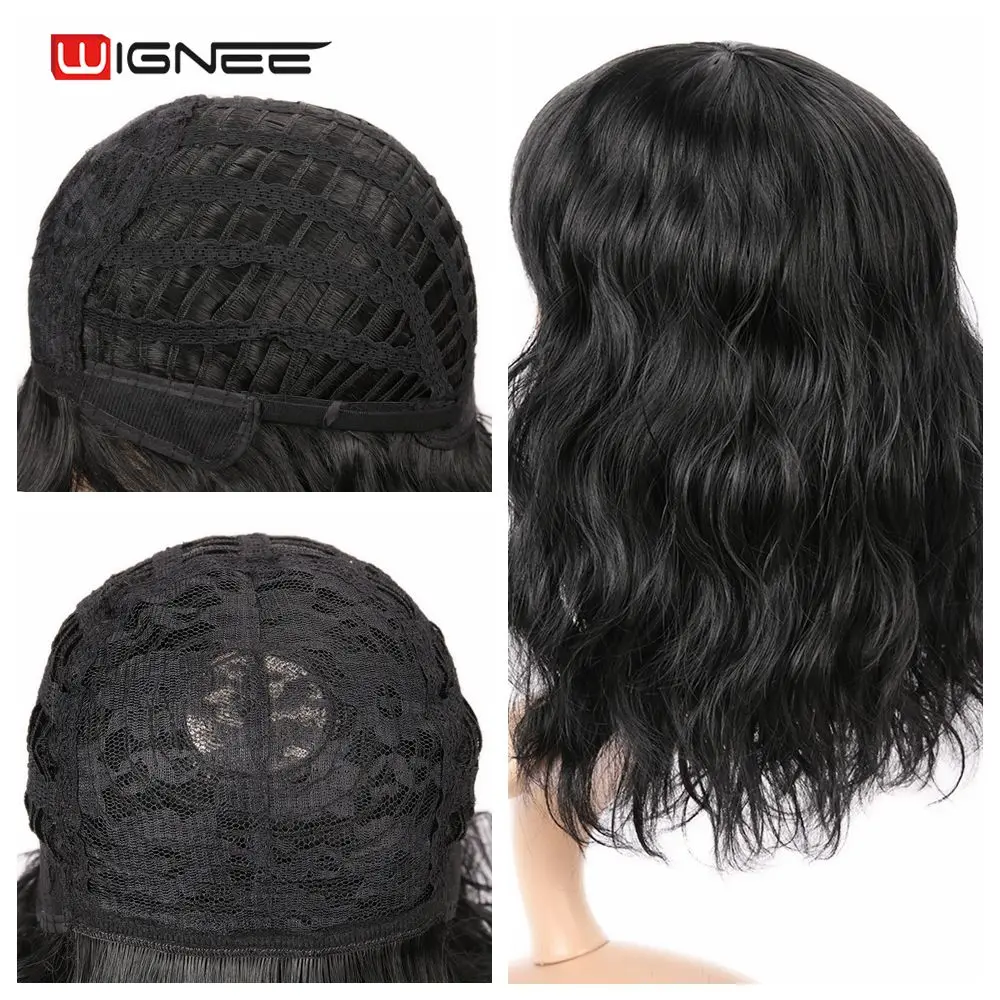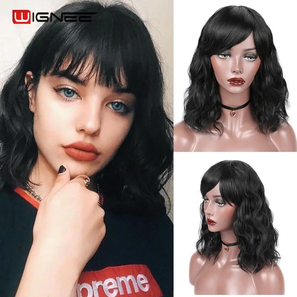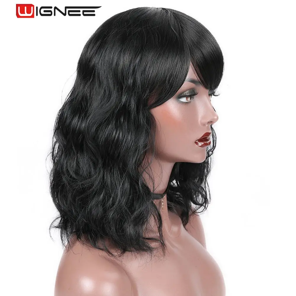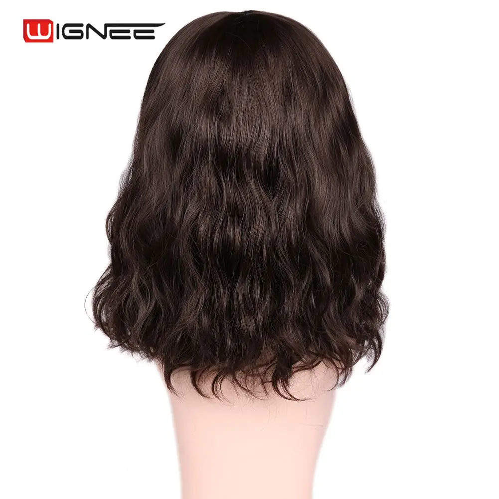 Wignee синтетические короткие черные/коричневые парики с челкой, волнистые волосы, термостойкие, повседневные, натуральные волосы, накладные, повседневные, женские парики