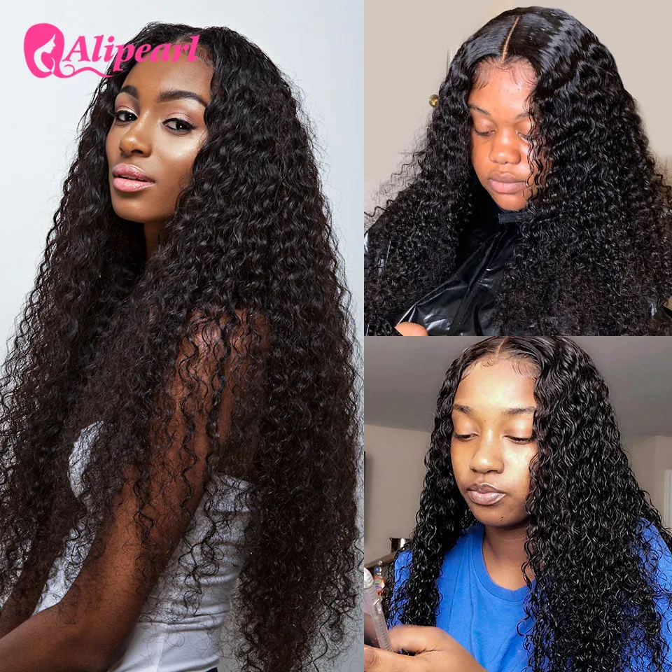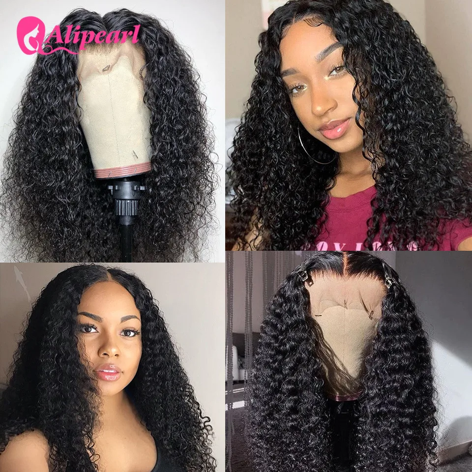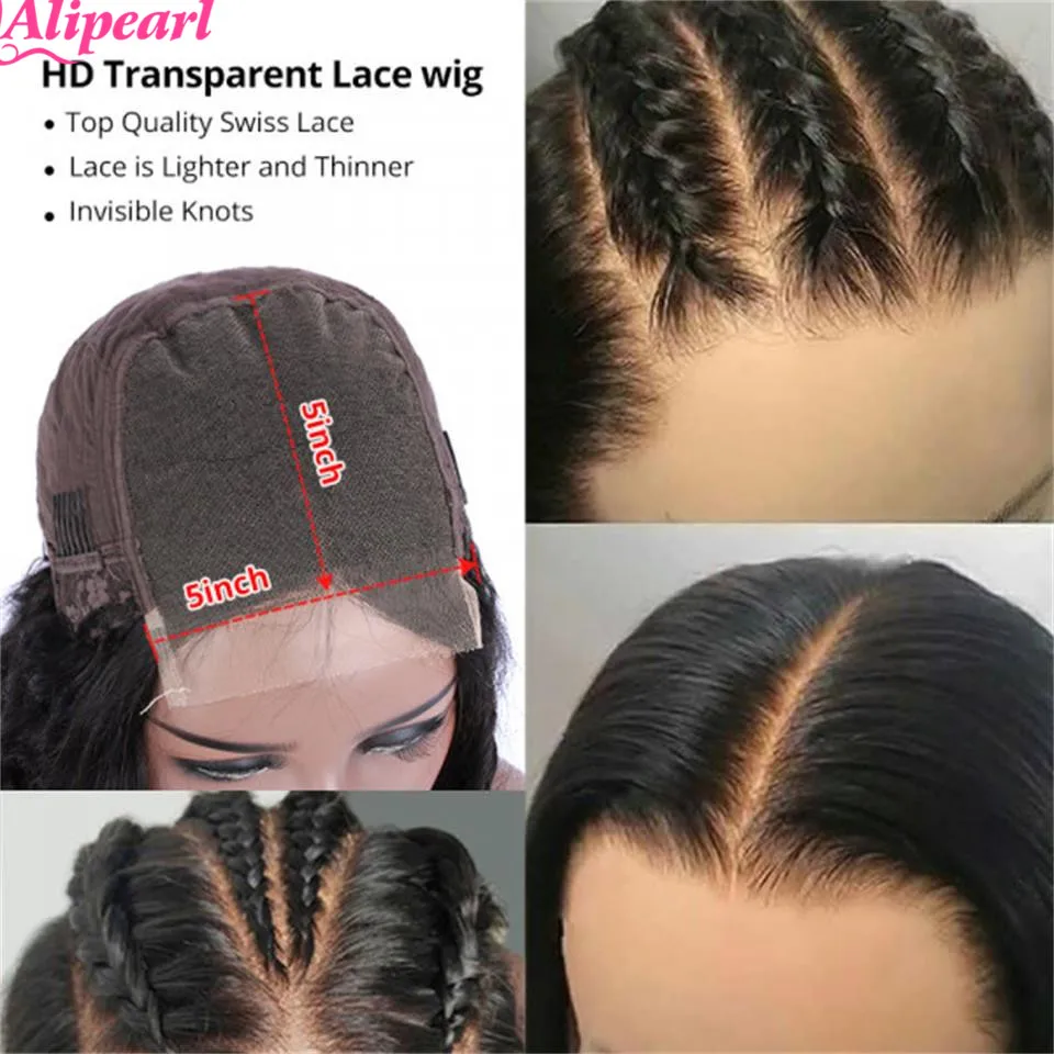 Вьющиеся 5x5 HD прозрачного кружева Закрытие парики