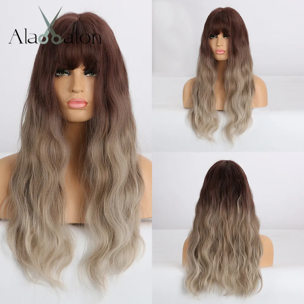 ALAN EATON Омбре блонд черный коричневый Косплей Лолита парики с челкой длинные волнистые синтетические волосы парик для женщин высокая температура волокна