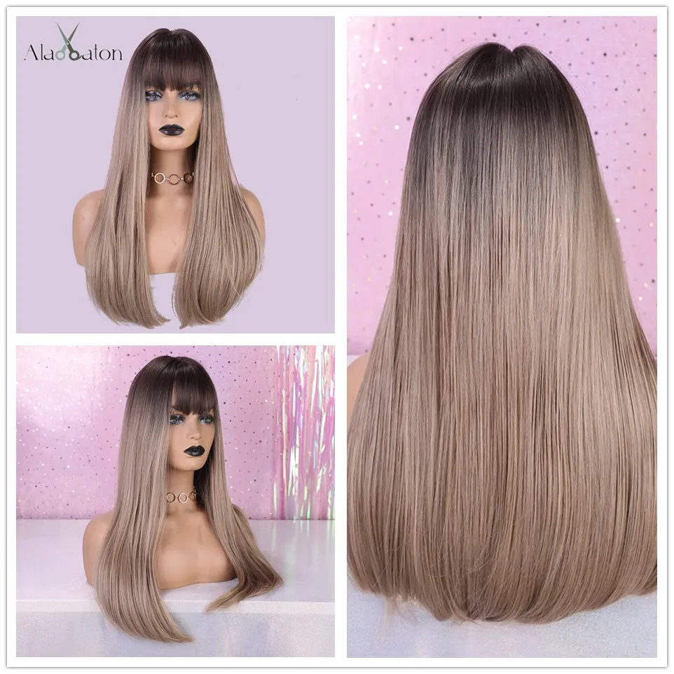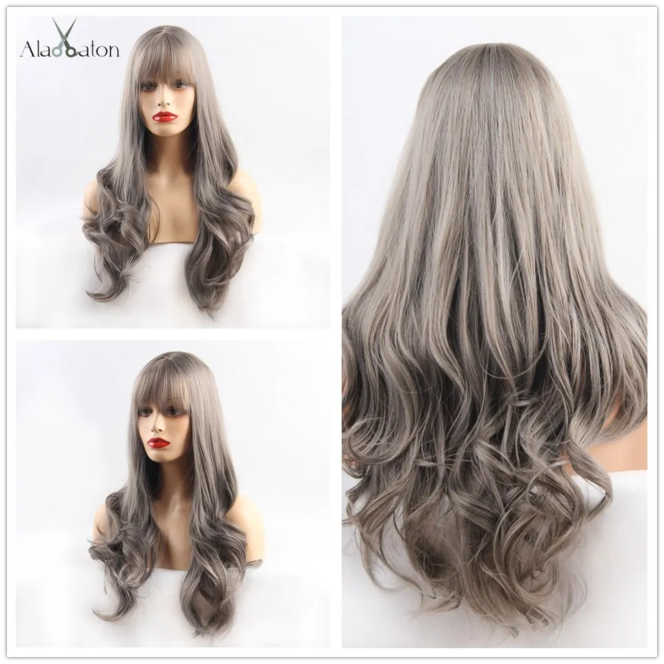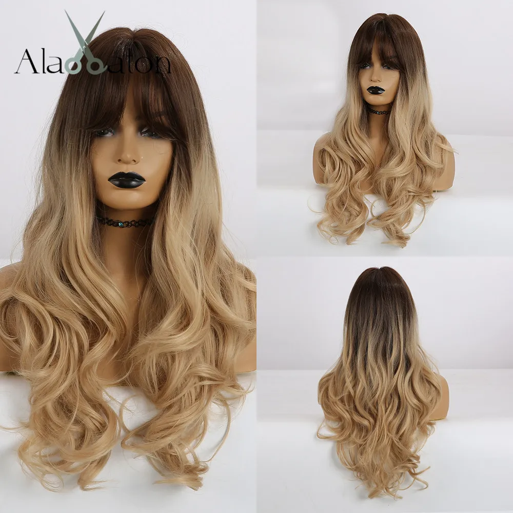 ALAN EATON, длинные волнистые волосы, парики с челкой, Омбре, черный, темно-коричневый, блонд, синтетические парики для черных женщин, термостойкие