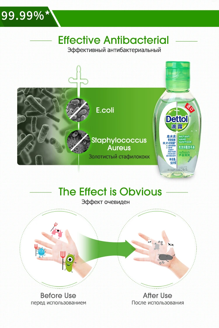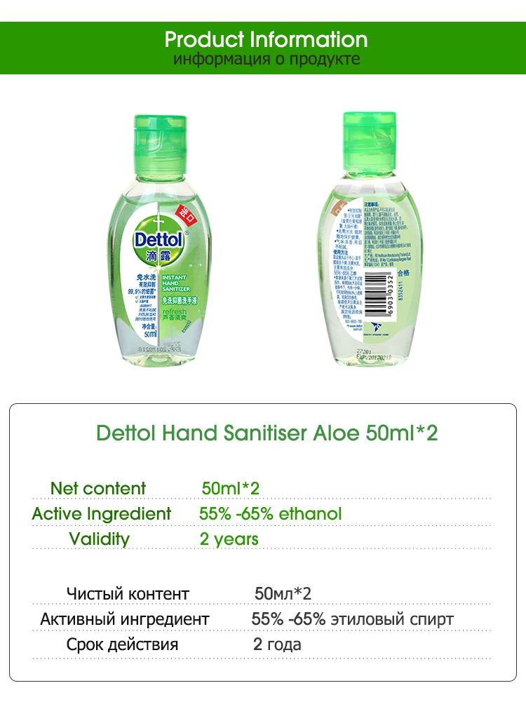 Dettol алоэ мгновенный дезинфицирующее средство для рук 65% Этанол Спирт 50 мл * 2 Мини Портативный одноразовый антибактериальный гель для взрослых и детей