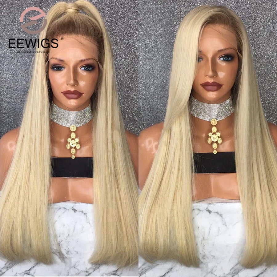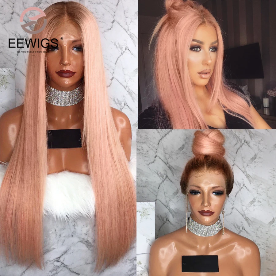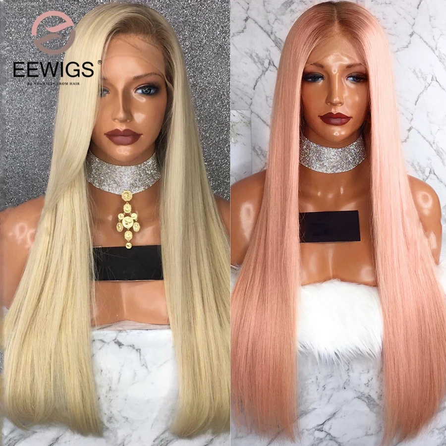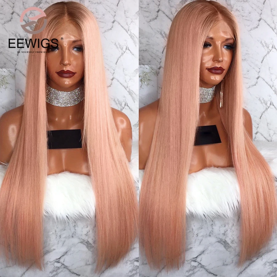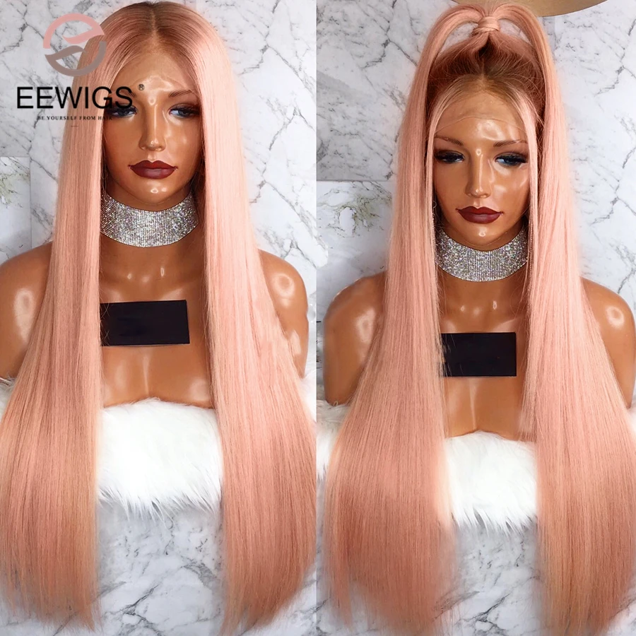 EEWIGS персиково-розовый синтетический парик на фронтальной сетке термостойкий бесклеевой парик для косплея длинные блондированные парики с эффектом омбре для чернокожих женщин