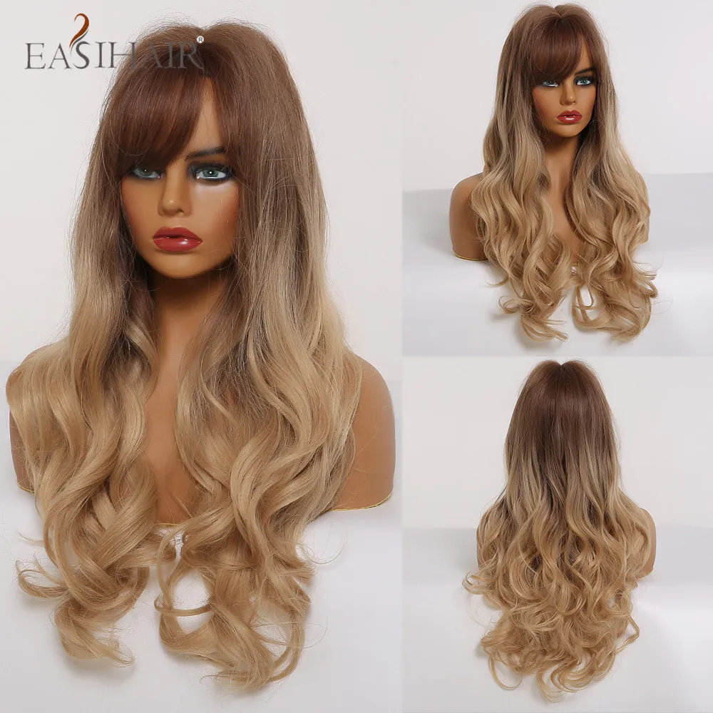 EASIHAIR длинный волнистый синтетический парик с коричневым и светлым Омбре для черных женщин косплей парик из натуральных волос высокотемпературное волокно
