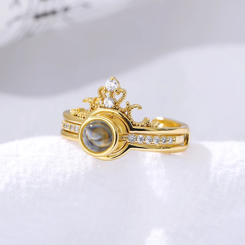 Кольцо с короной, романтическое признание, ювелирное изделие, 100 языков, я люблю тебя, регулируемые кольца, роскошный темперамент