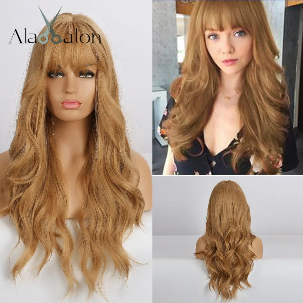 ALAN EATON, длинный, медовый, блонд, волна, синтетический парик с челкой для черных женщин, высокая температура, волокно, Косплей парики