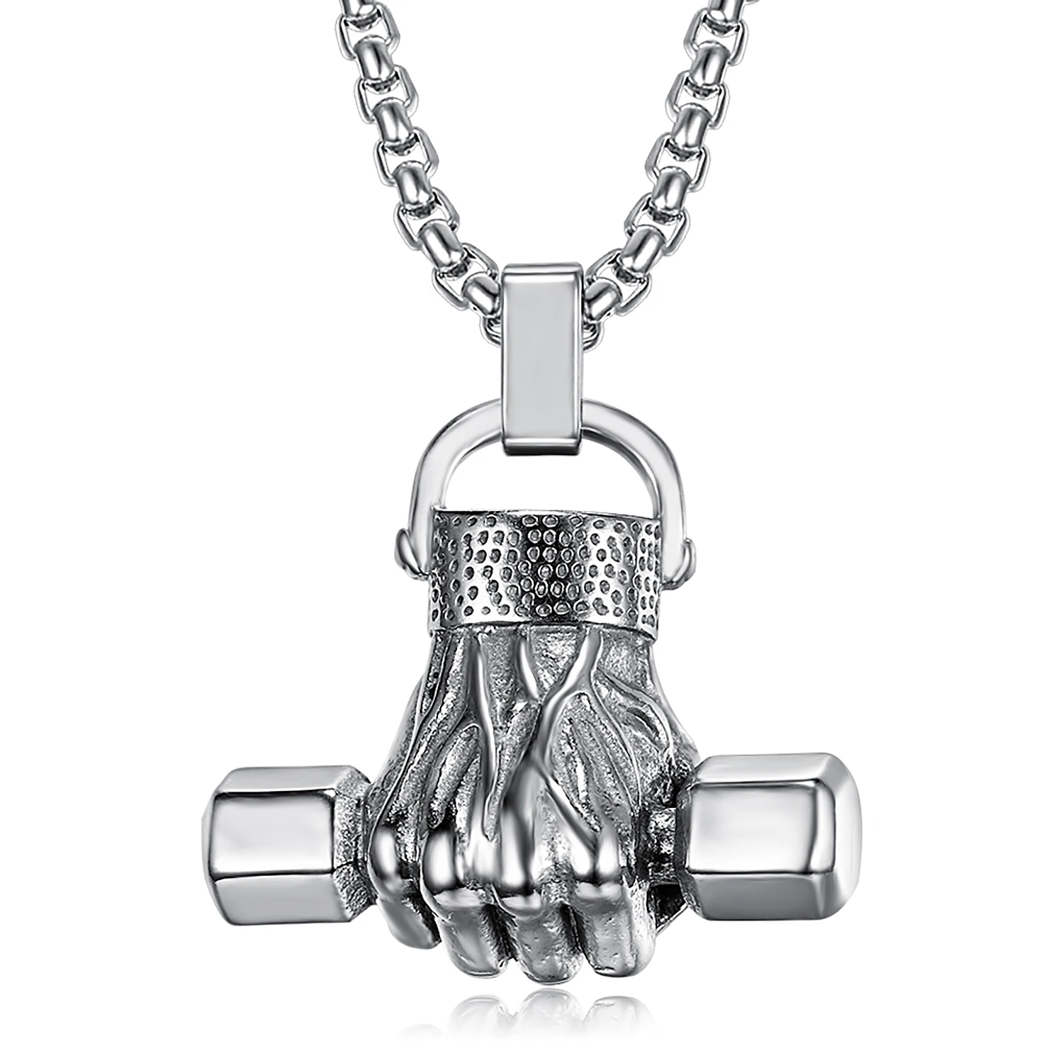 Хип-хоп серебряное ожерелье с подвеской Длинная цепочка Ретро кулак подвеска в виде гантели ожерелье из нержавеющей стали цепь спортивные ювелирные изделия