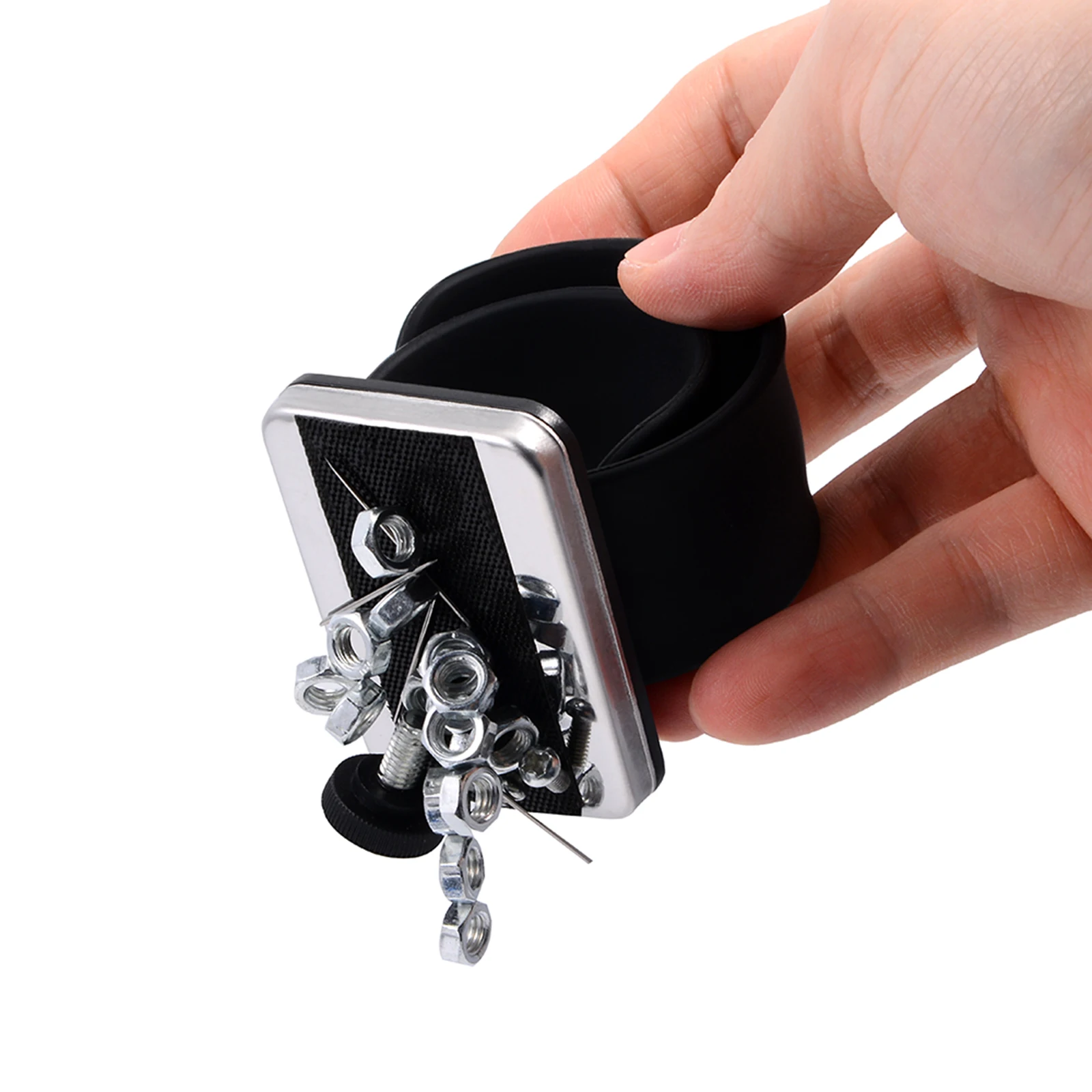 1. Магнитный дизайн --- встроен в супер сильные магниты, он способен удерживать на нем больше необходимых предметов: винты, болты, биты, гвозди, дрель и другие магнитные мелкие инструменты. Не упадут, если вы их не снимите. И гарантируем более высокую эффективность.