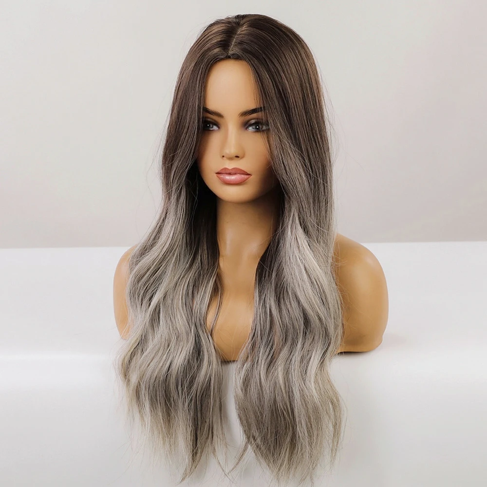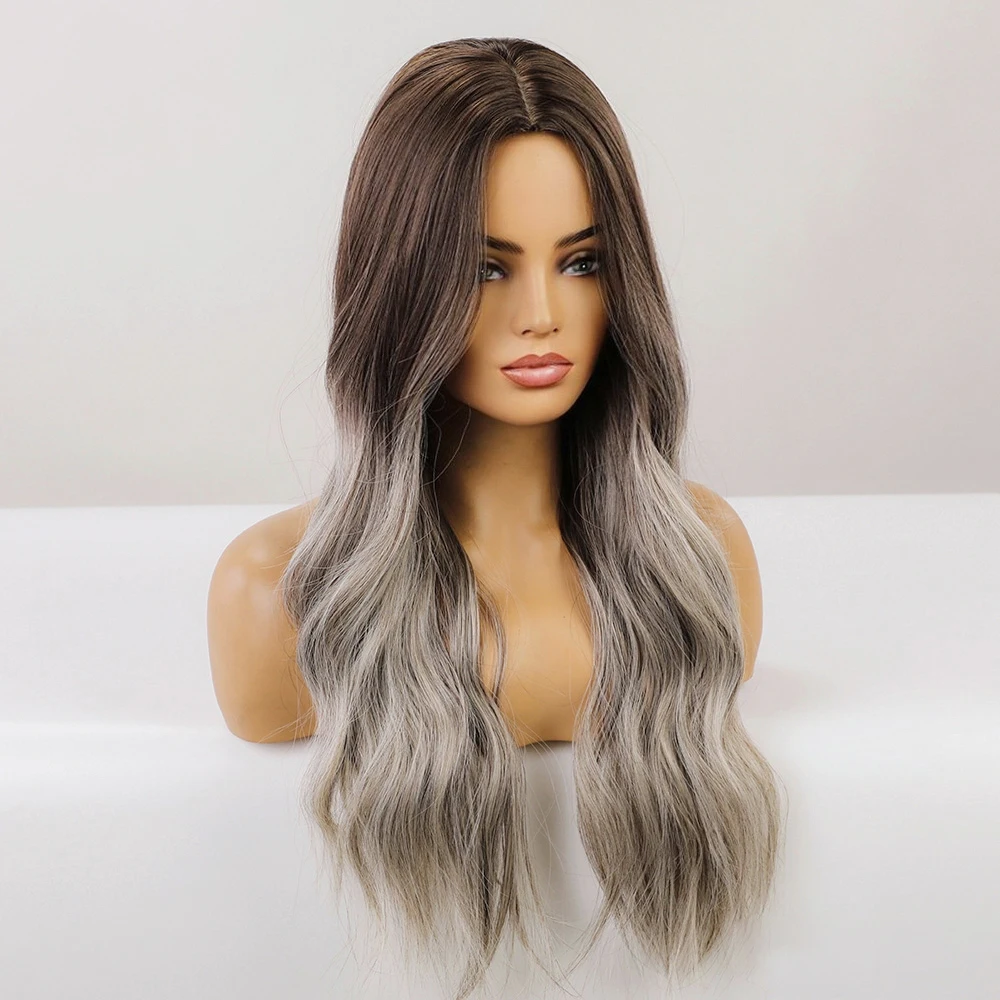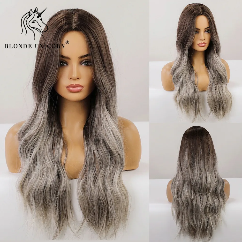 Парики из Длинных Волнистых Волос блонд, единорог, коричневый, Омбре, серый, синтетические парики для черно-белых женщин, вечерние, для ежедневного использования, Термостойкое волокно