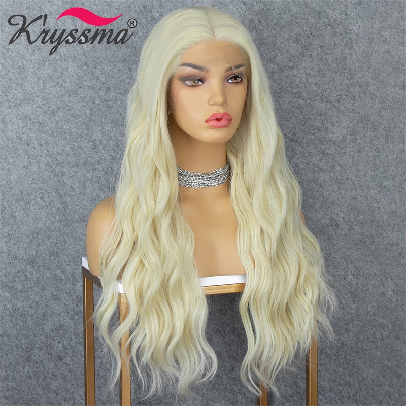 Kryssma, парик блонд, длинные волнистые синтетические парики для женщин, кружевной передний парик, женские парики для косплея, термостойкие волоконные волосы