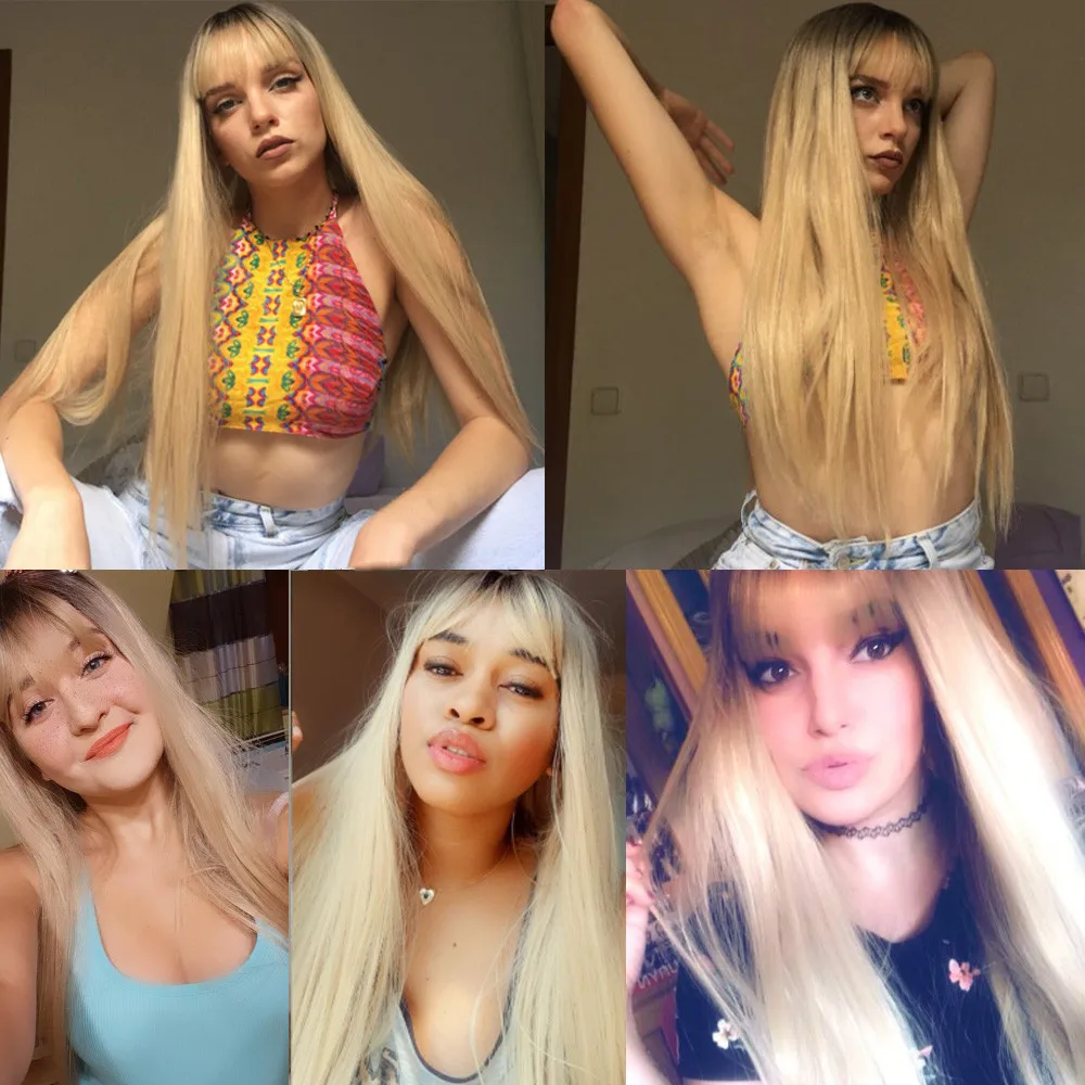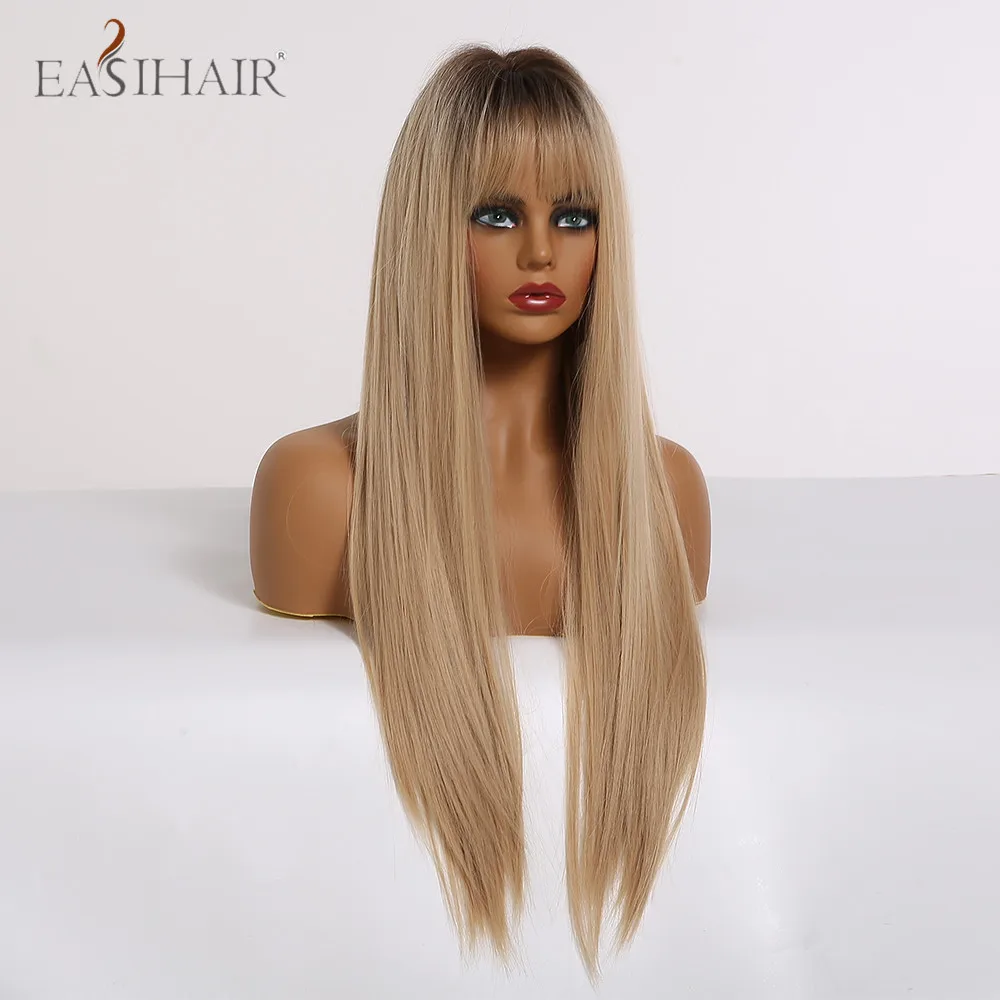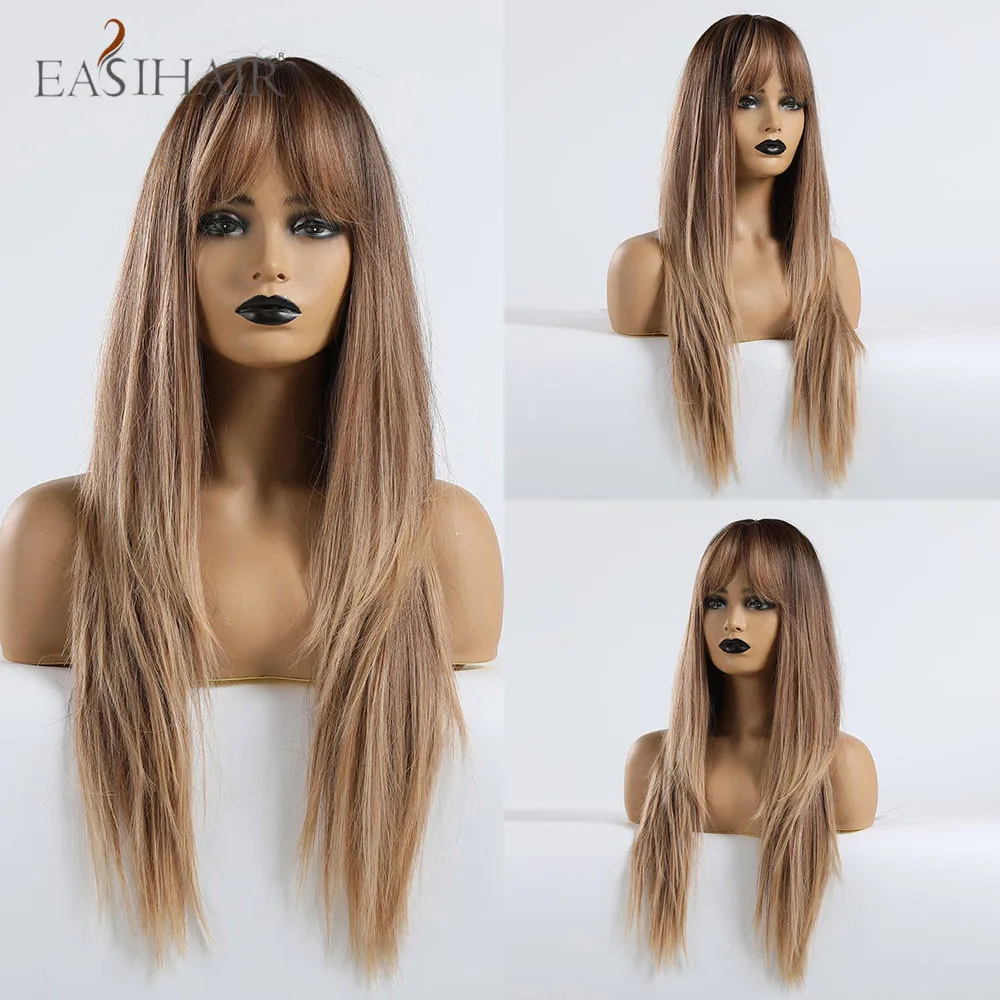 Светлые, коричневые, длинные, шелковистые, прямые волосы, парики с челкой, натуральные, косплей, синтетические парики для женщин, термостойкие