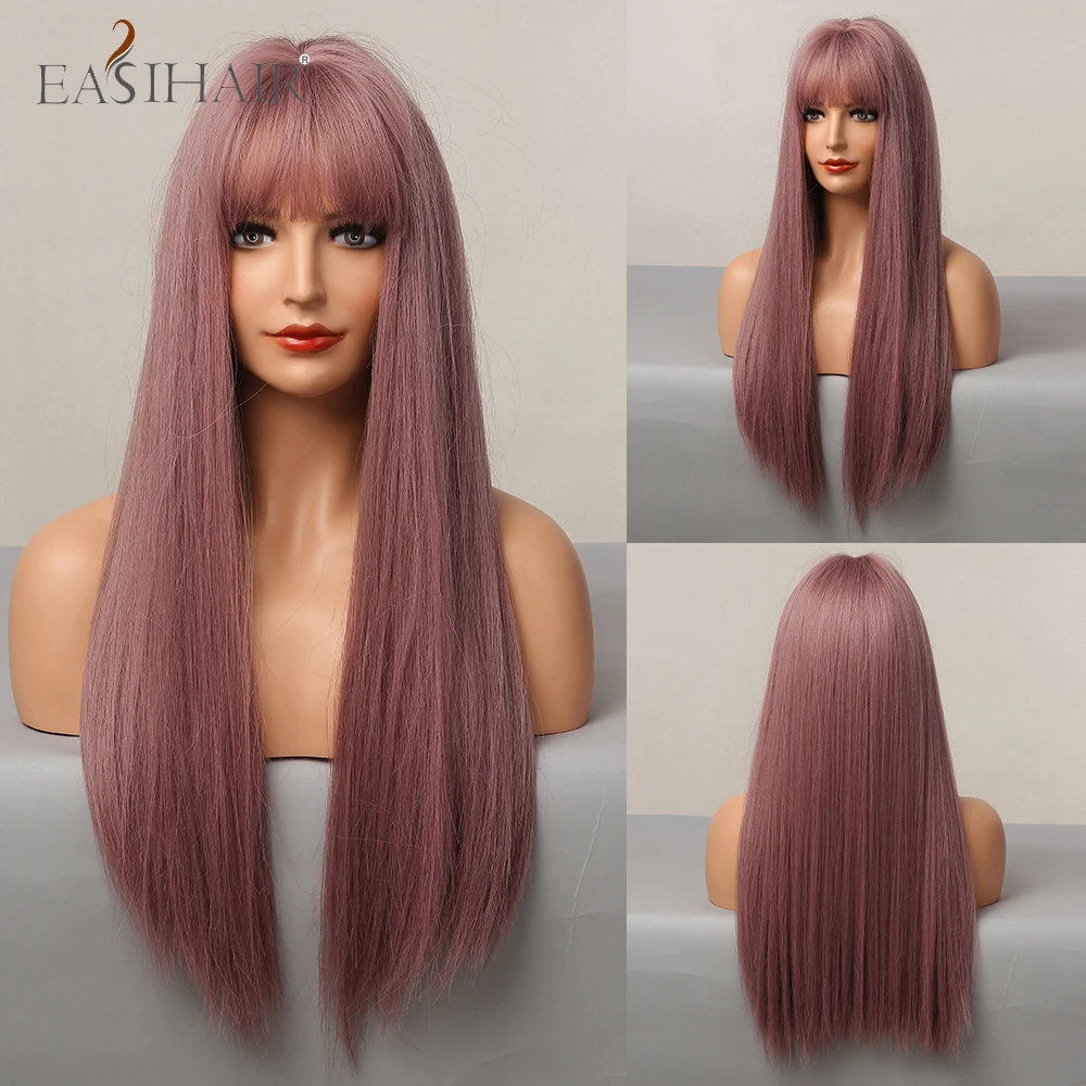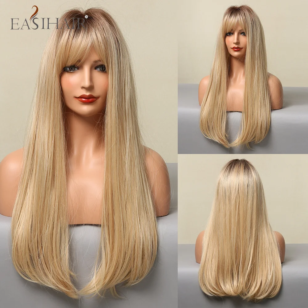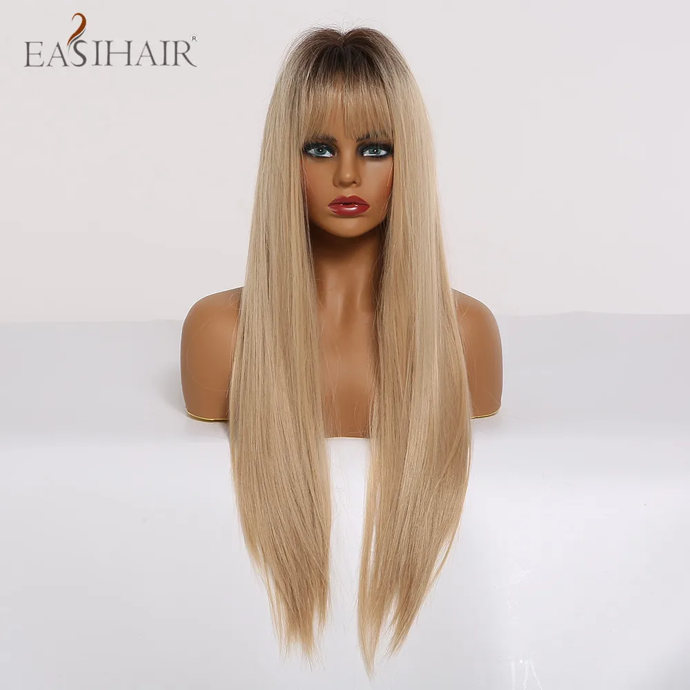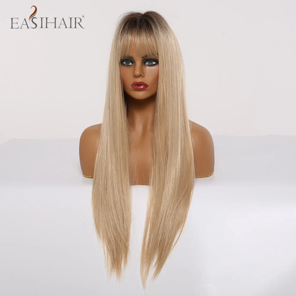 Светлые, коричневые, длинные, шелковистые, прямые волосы, парики с челкой, натуральные, косплей, синтетические парики для женщин, термостойкие