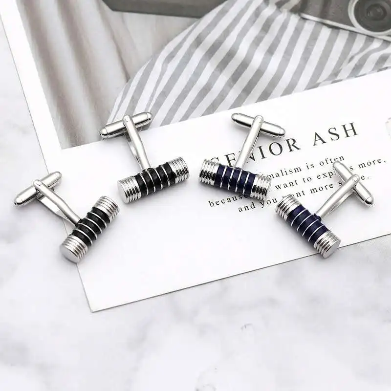Высокое качество, стабильная и тяжелая французская рубашка для мужчин, деловые черные и синие полосатые цилиндрические высококачественные аксессуары, запонки, подарок для мужчин
