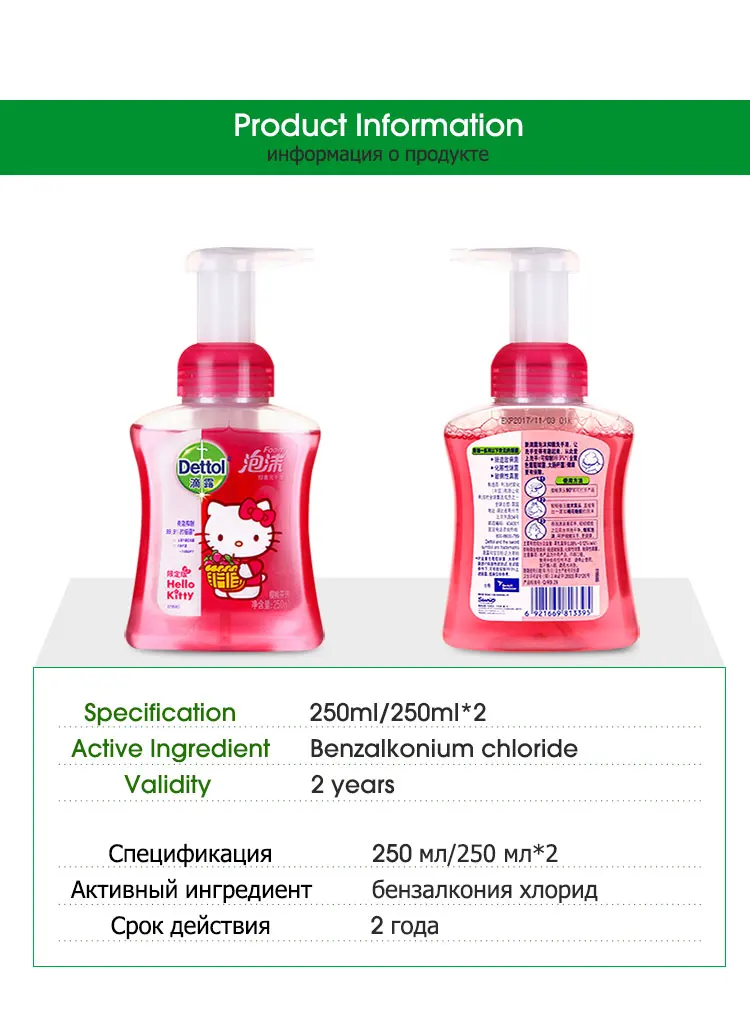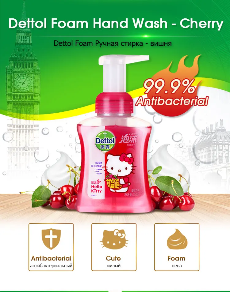 Dettol 250 мл * 2 пена дезинфицирующее средство для рук увлажняющий Дезинфицирующий Гель для мытья рук вишня для взрослых детей