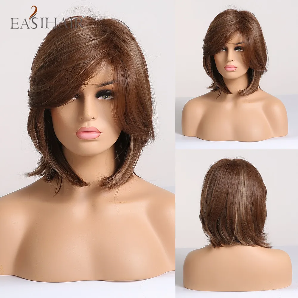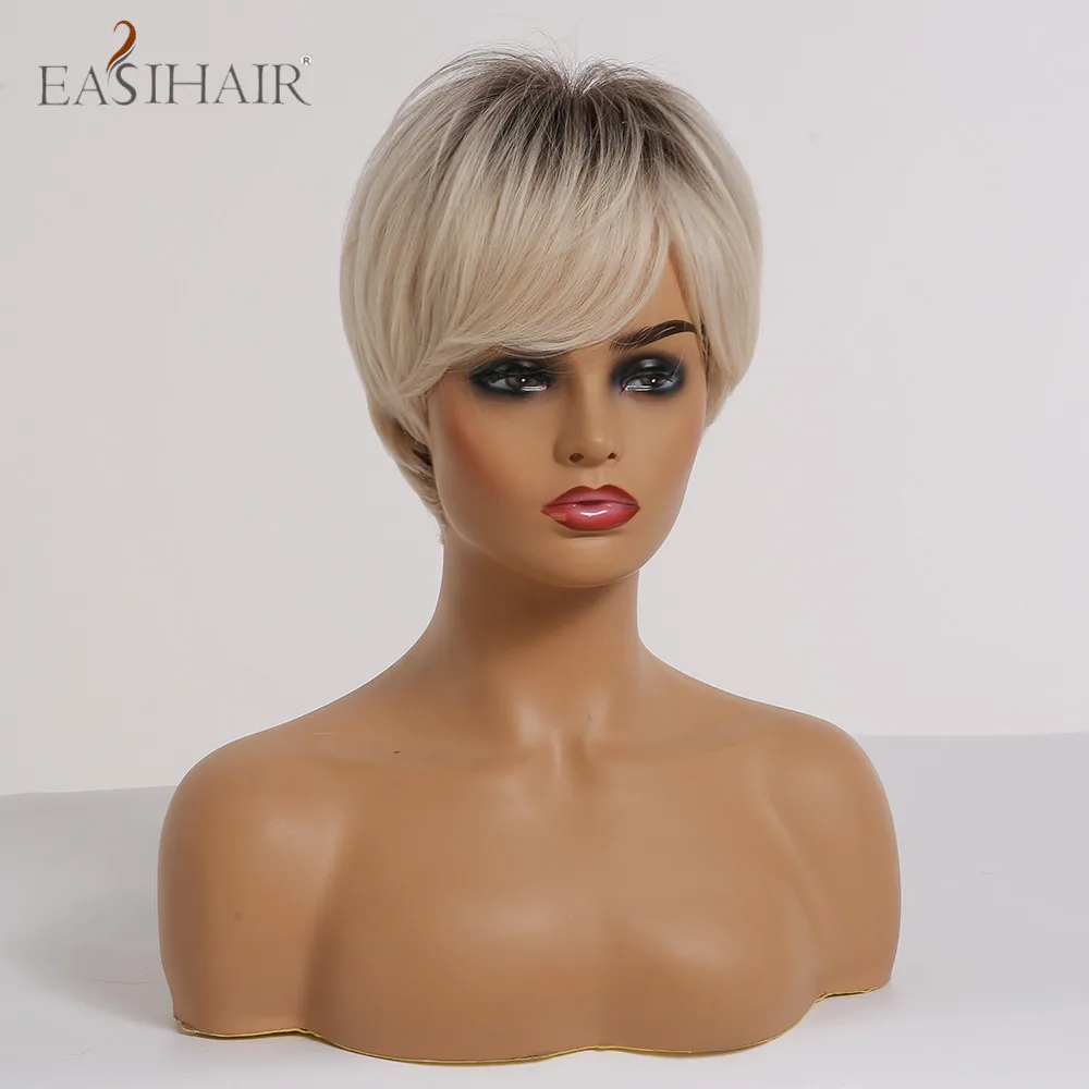 EASIHAIR короткие прямые Омбре блонд синтетические волосы парики с челкой для женщин парики на каждый день Многослойные термостойкие натуральные волосы парик