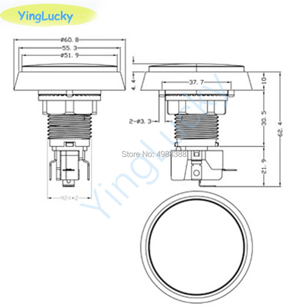 Большая круглая аркадная кнопка, 60 мм, 5 цветов, микро-переключатель, 5 В/12 В, кнопка питания для аркадных видеоигр, машина, кнопочный переключатель